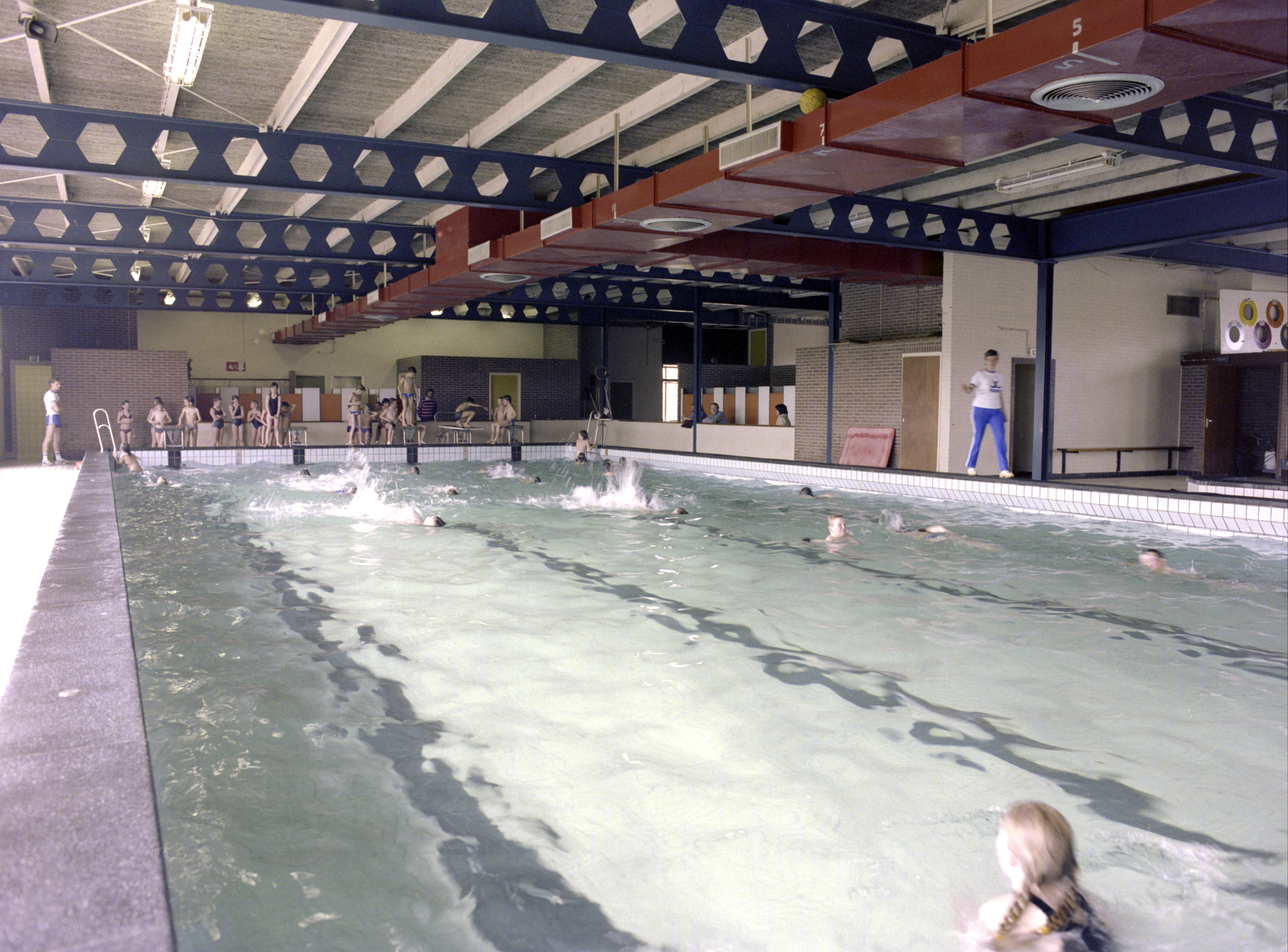 Interieur van sportfondsenbad De Waterstee aan de Nassaustraat in Numansdorp.