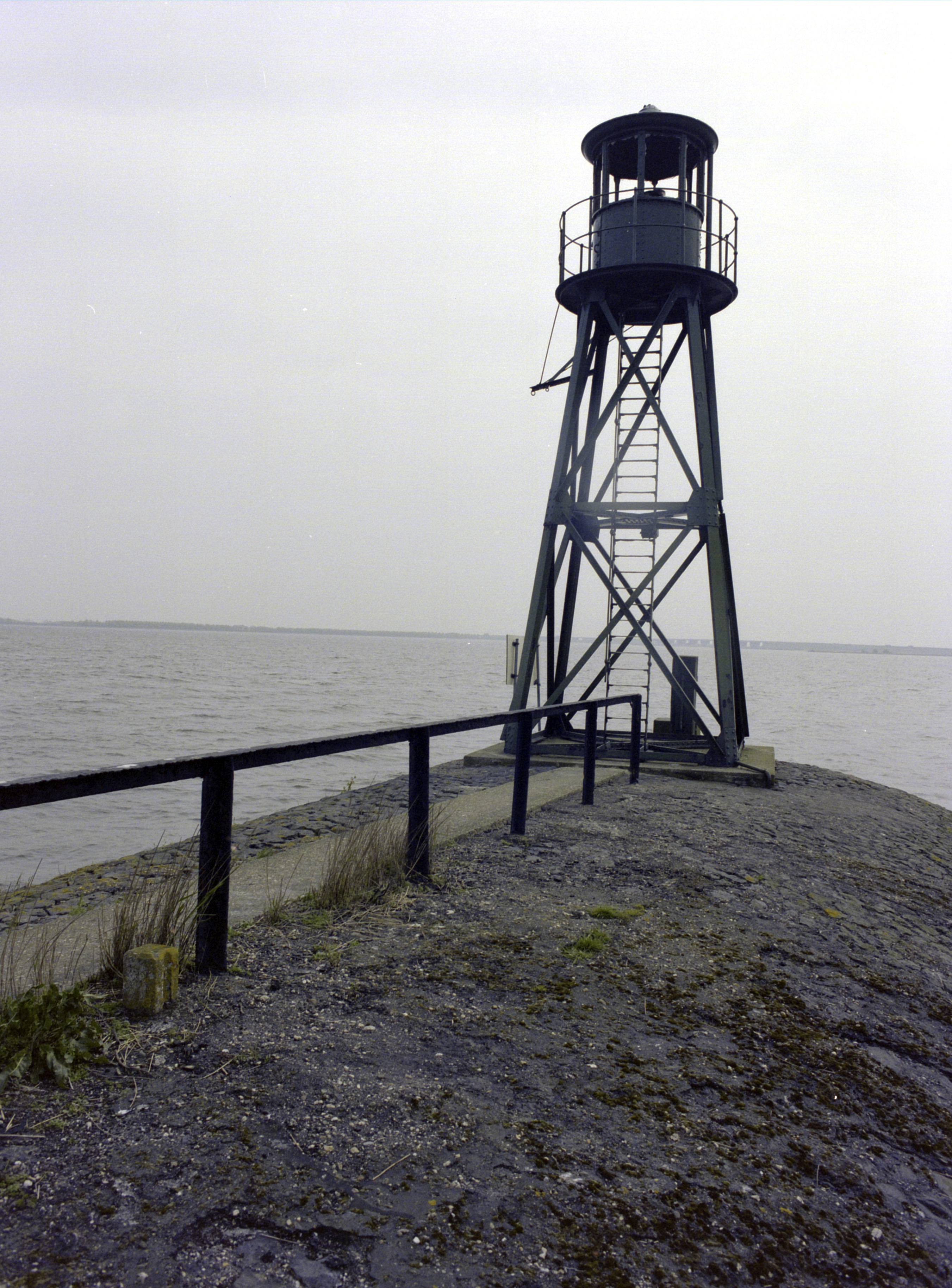 - Pier met lichtbaken in het Hollandsch Diep bij de Tramweghaven in Numansdorp.