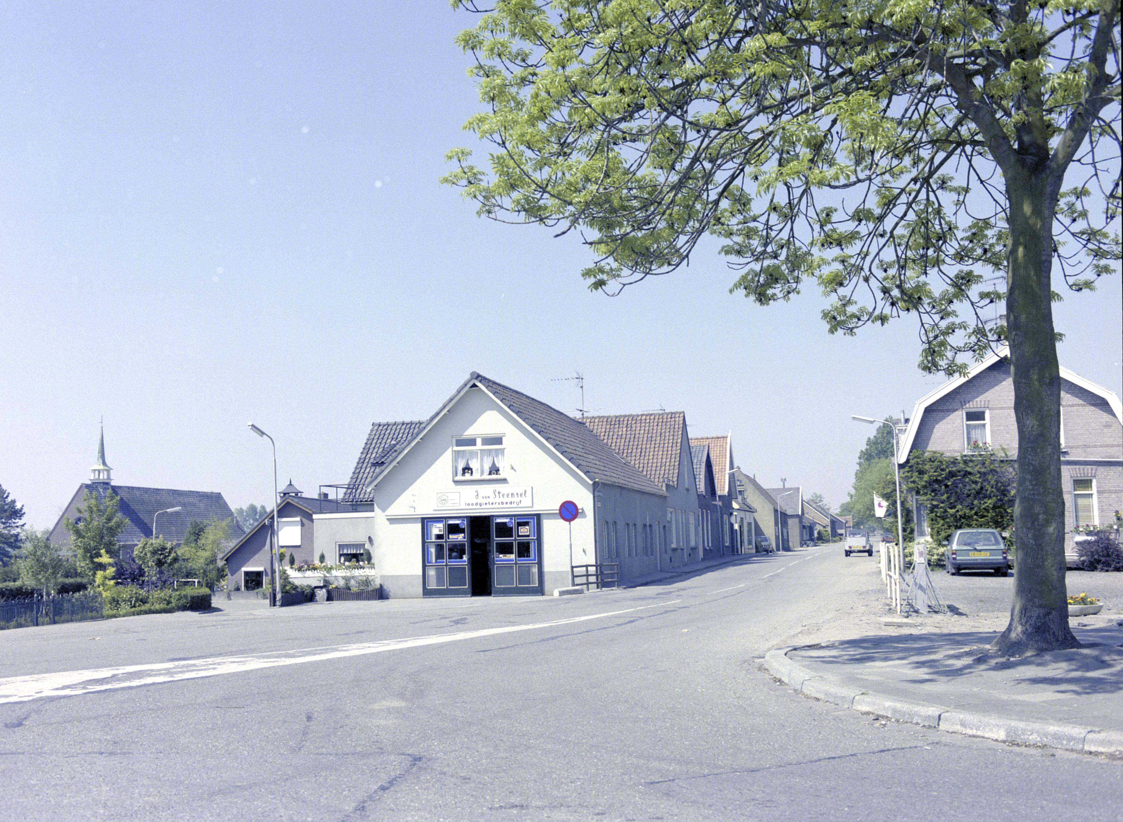 De Oud-Cromstrijensedijk Westzijde vanaf de Molendijk in Klaaswaal. Links de kerk van …