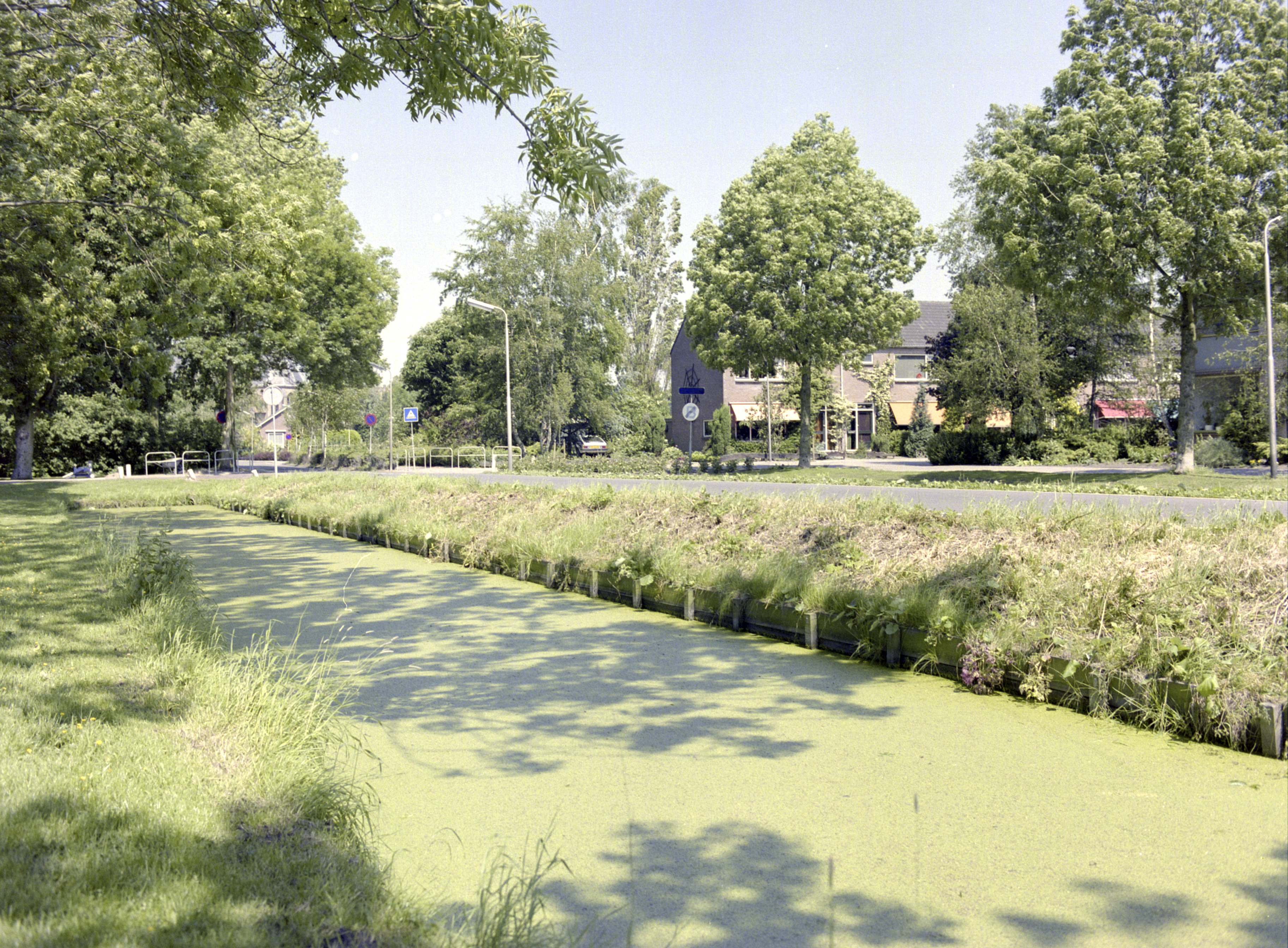 - Vijver langs de Kerkweg in Giessenburg, gezien vanaf de Randweg. De huizen staan in de Van Delftstraat.