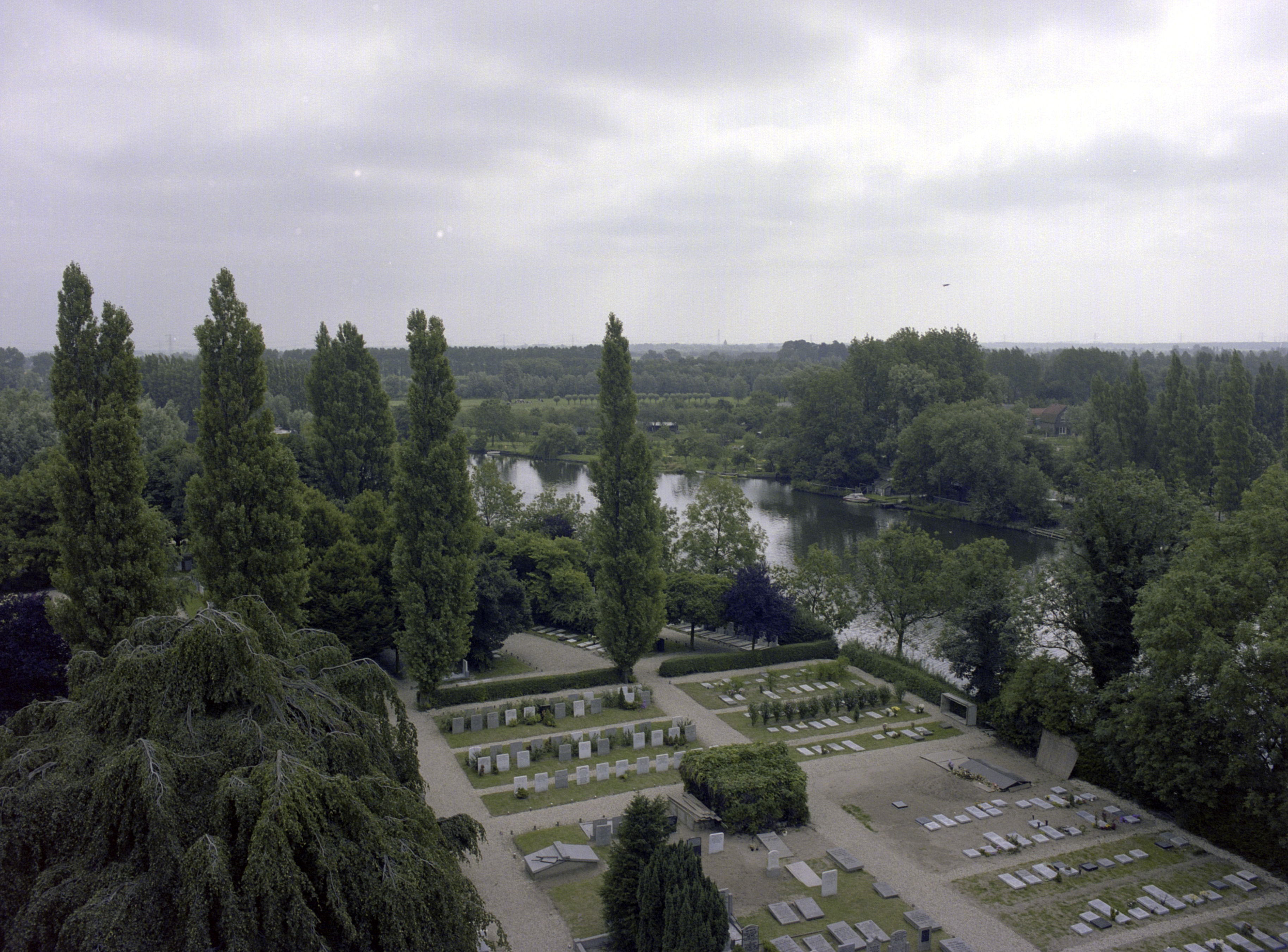 - Panorama vanaf de Oude Toren aan de Kerkstraat in Alblasserdam over de begraafplaats, naar het oosten in de richting van de Alblas.