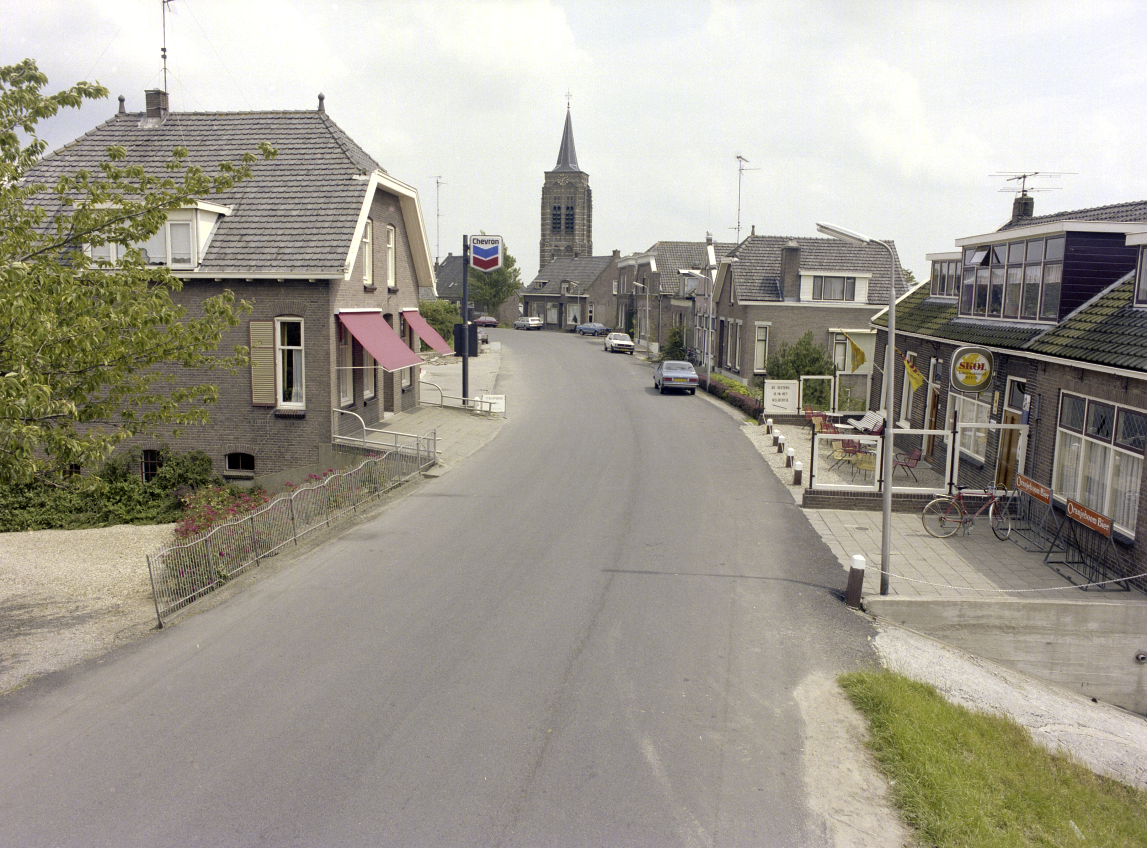 Vanaf Sluis zicht op de Kerk van de Hervormde Gemeente aan de Kerkstraat in Groot Ammers.