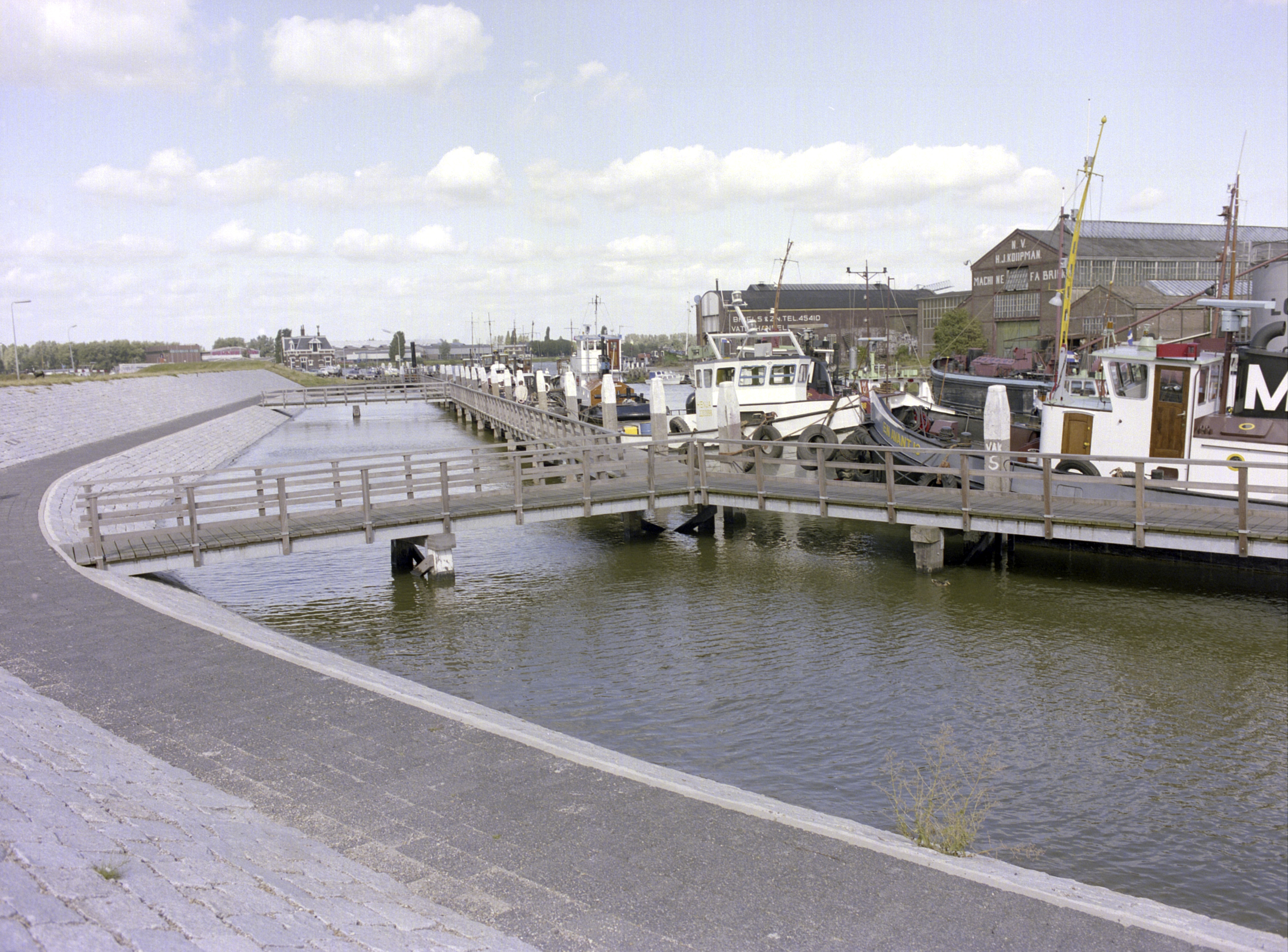 - De Riedijkshaven. Links Bleijenhoek en het veerhuis bij het Papendrechts veer, rechts machinefabriek Koopman.