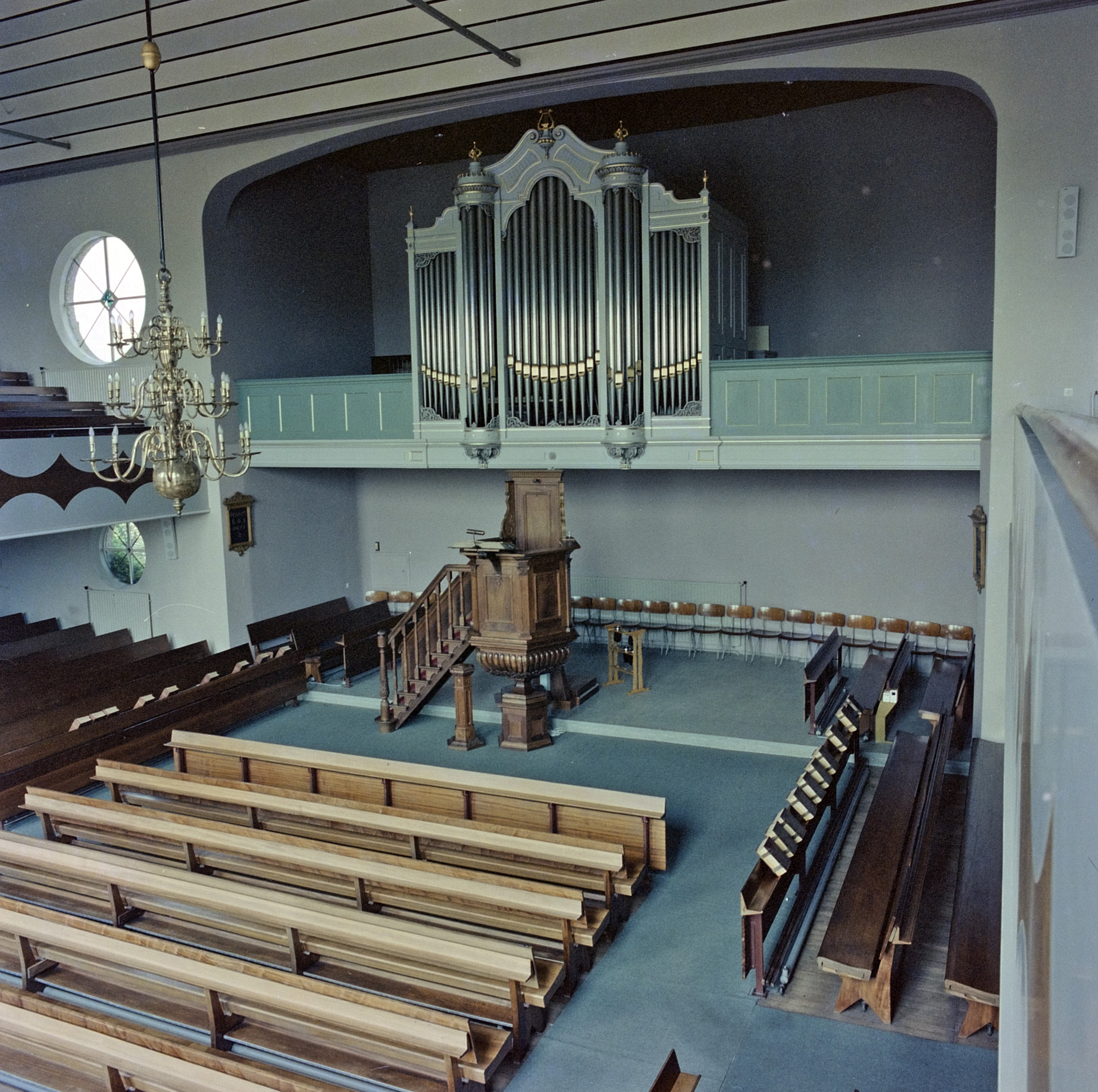 - kerkbanken kerkinterieurs kerkorgels kroonluchters preekstoelen