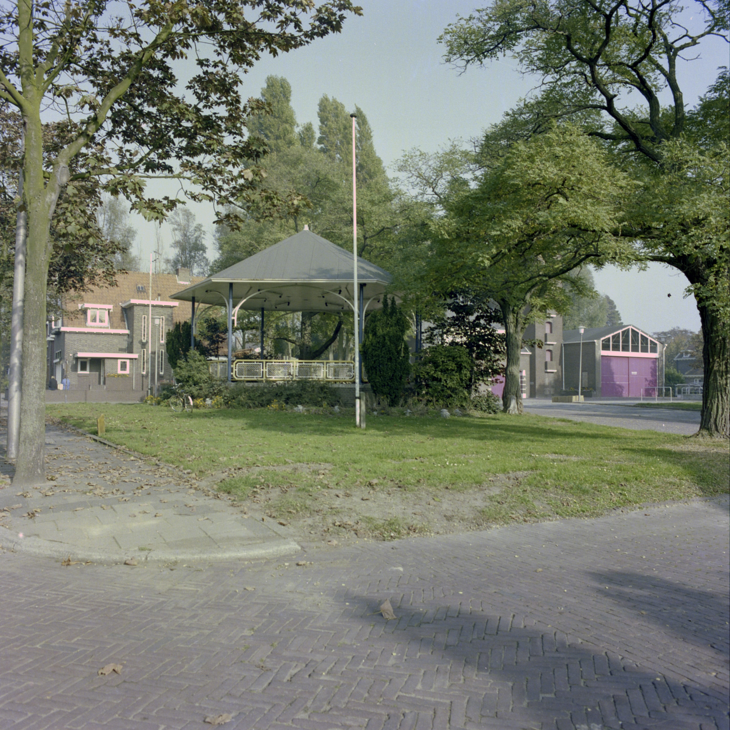 Muziektent aan de Eilandstraat in Papendrecht Rechts staat de brandweerkazerne in de …