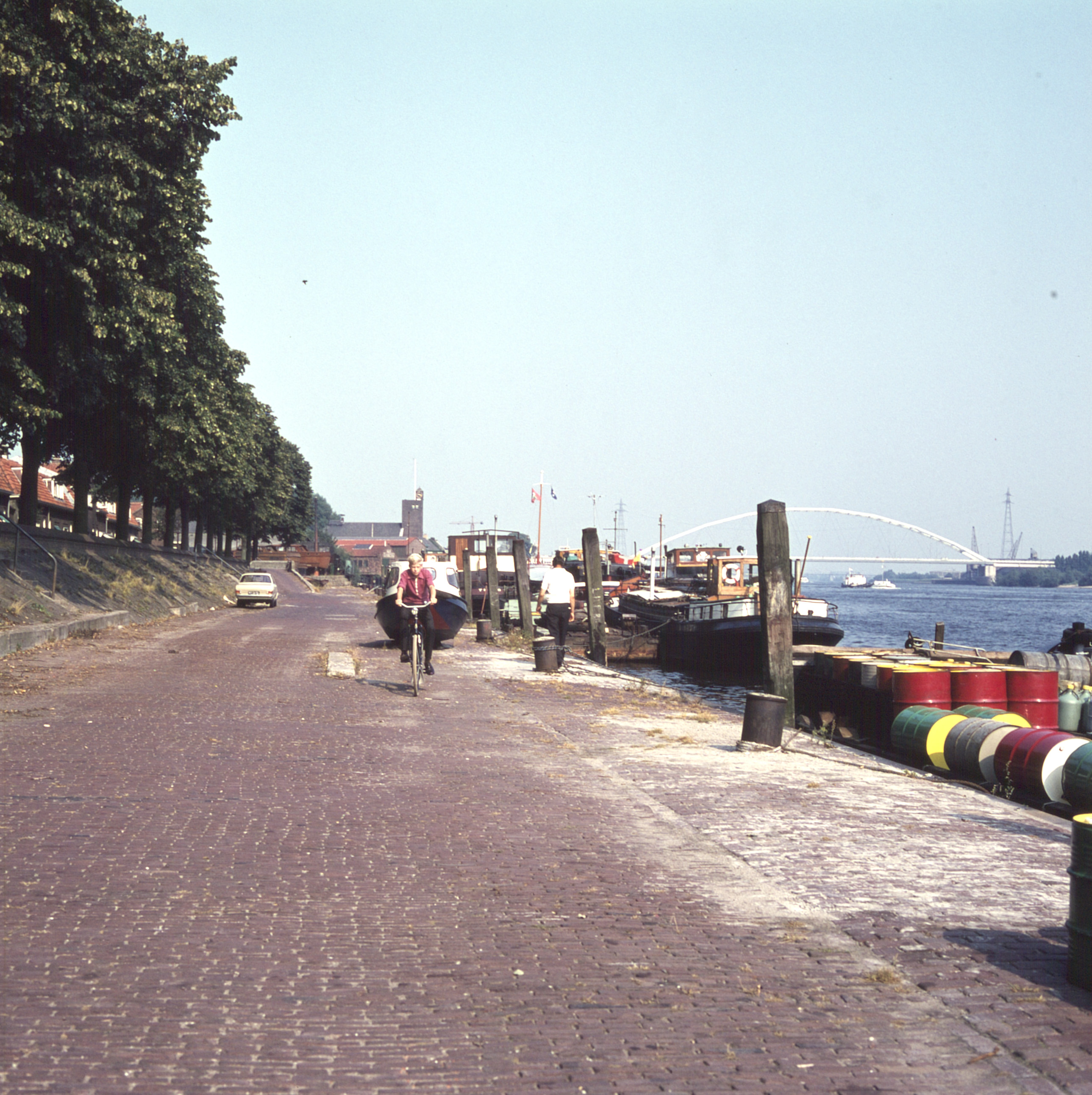 Merwedesingel richting de Merwedebrug over de Beneden Merwede en de Hervormde Kerk in …