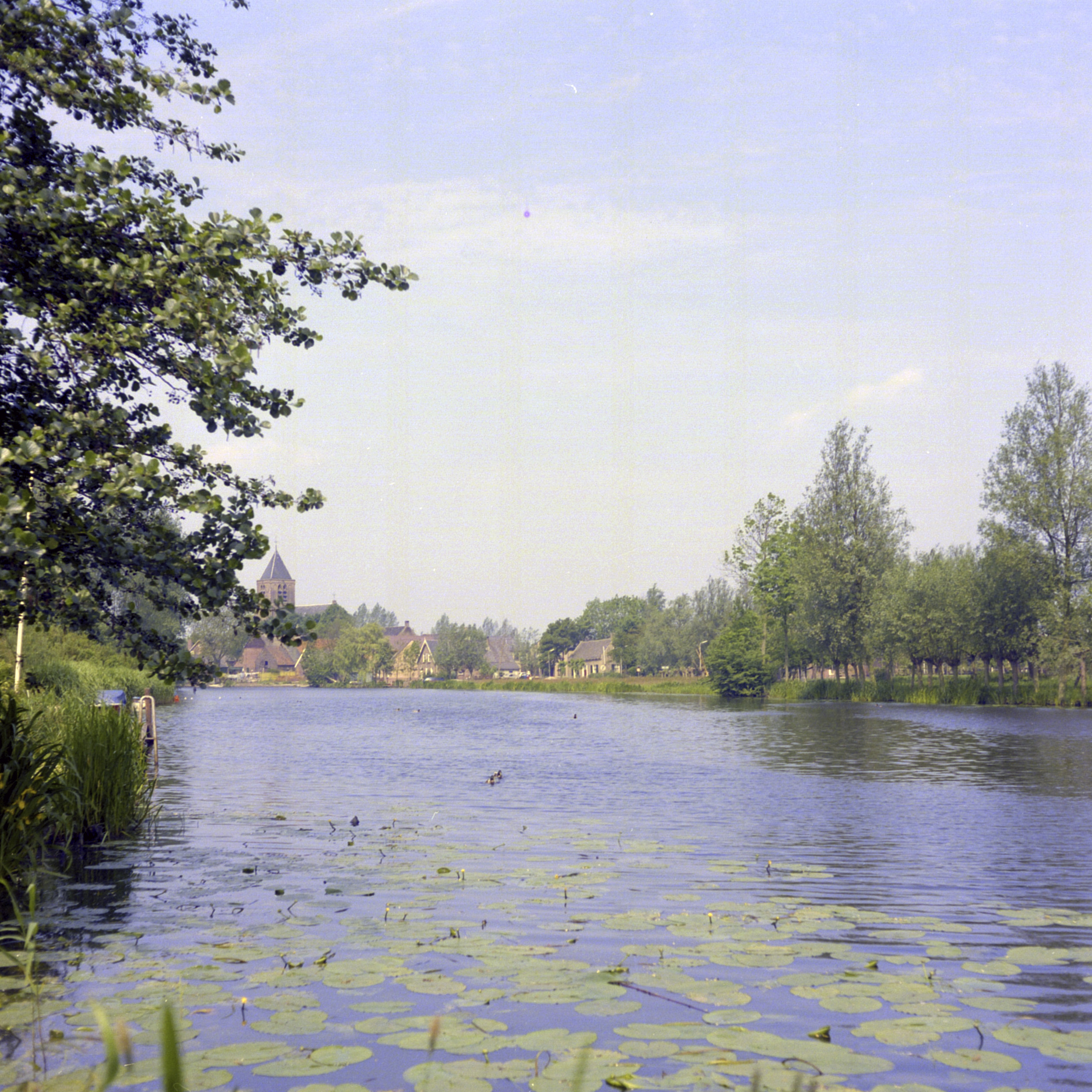Huizen aan de Oudkerkseweg in Giessenburg, gezien over de Giessen richting Hervormde Kerk.