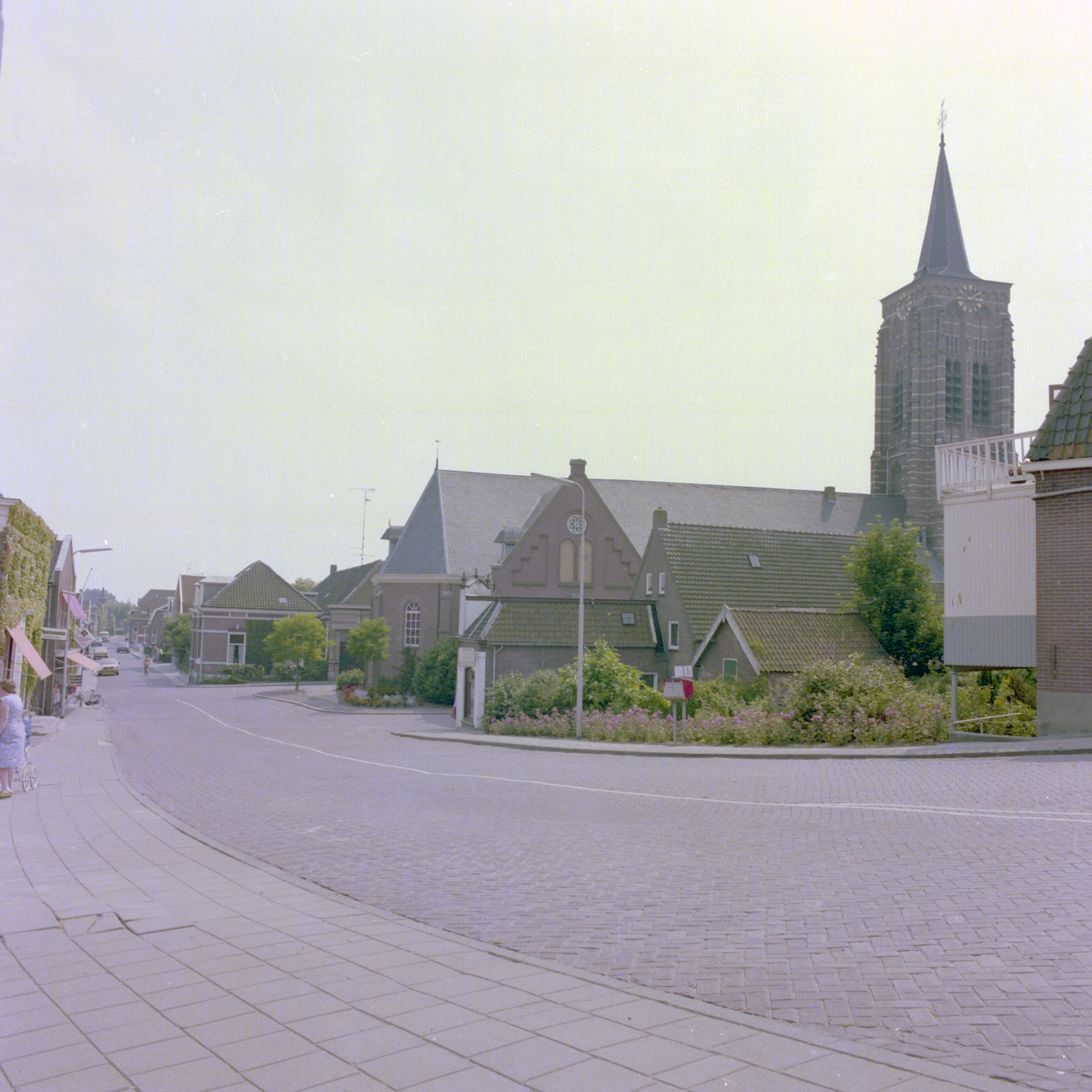 - Kerkstraat met de Hervormde Kerk in Groot-Ammers.
