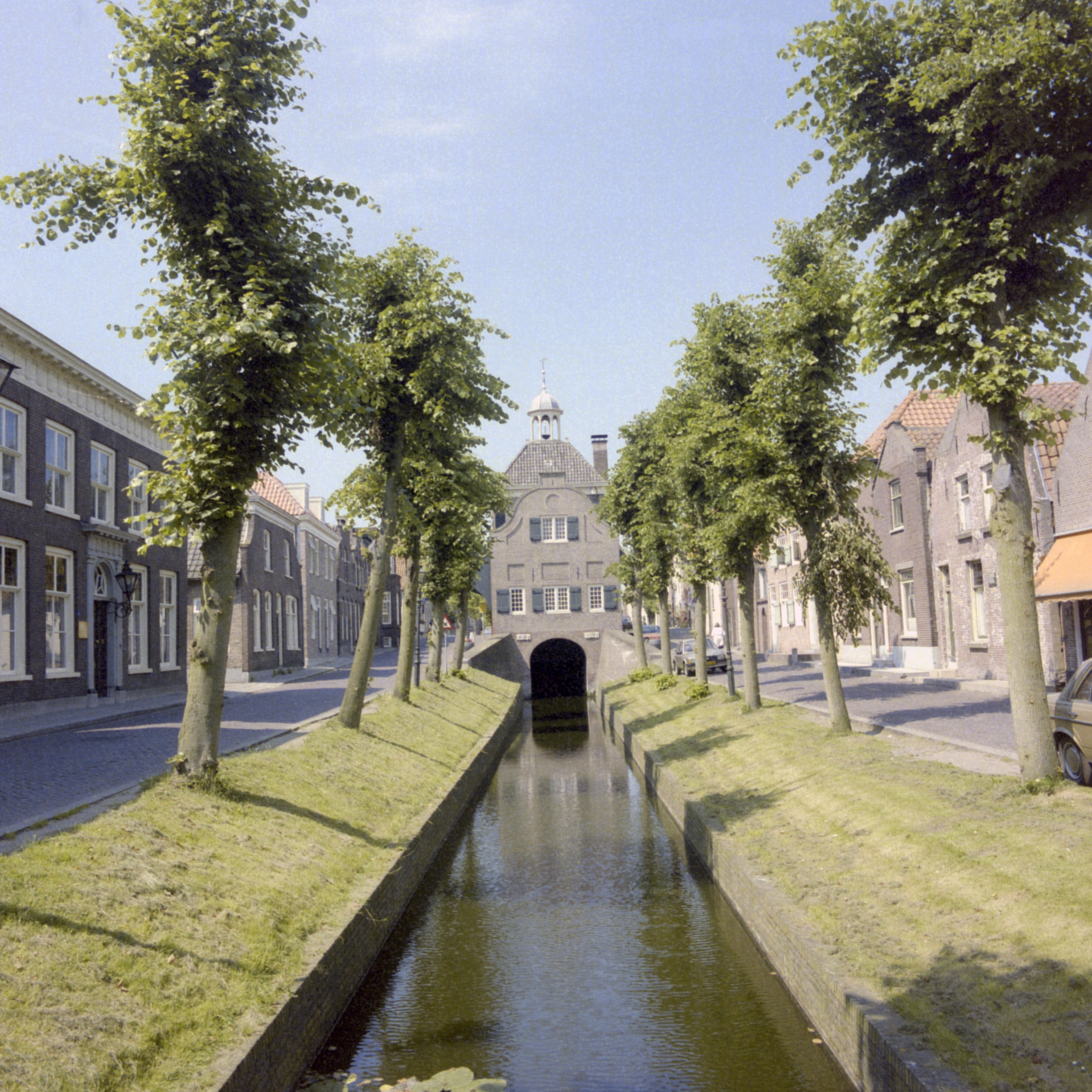 - Achterzijde van het stadhuis aan de Hoogstraat gezien vanaf de Binnenhaven in Nieuwpoort.
