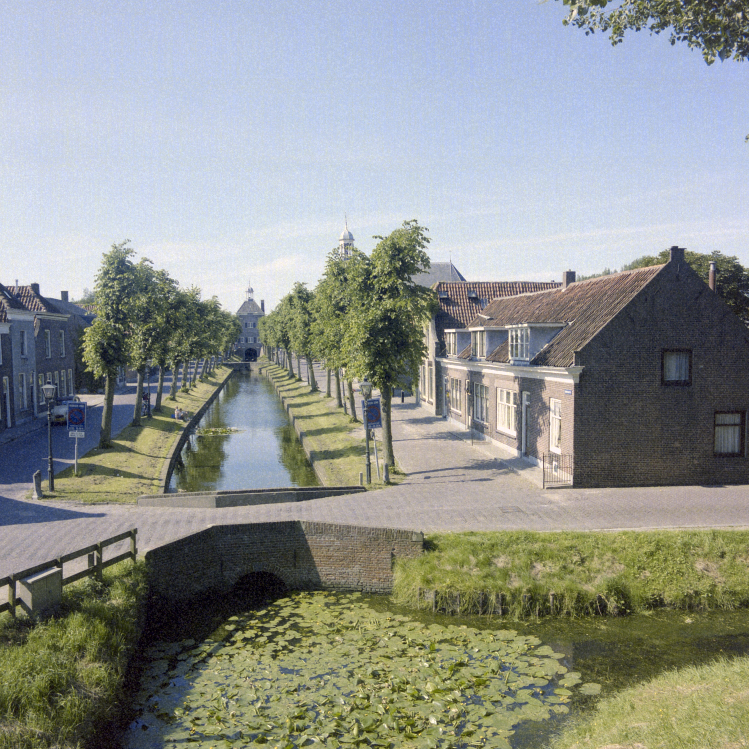 De Binnenhaven richting het raadhuis in Nieuwpoort. Rechts de toren van de Hervormde Kerk.