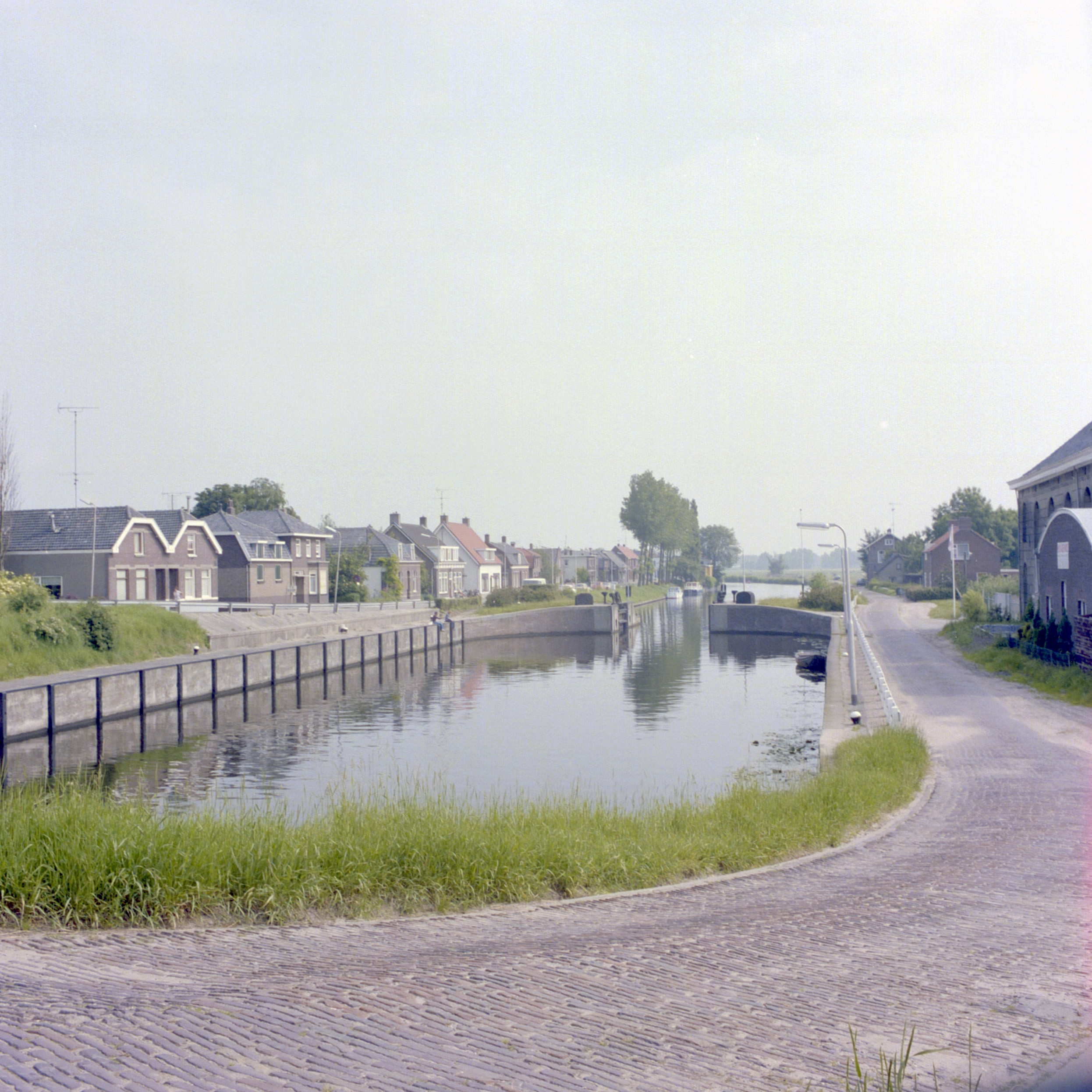 - Sluis in het Zederikkanaal in Arkel, gezien vanaf het Rietveld naar het noordoosten. Links de Dam, rechts de Sluisweg. Rechts vooraan het stoomgemaal Arkelse Dam.