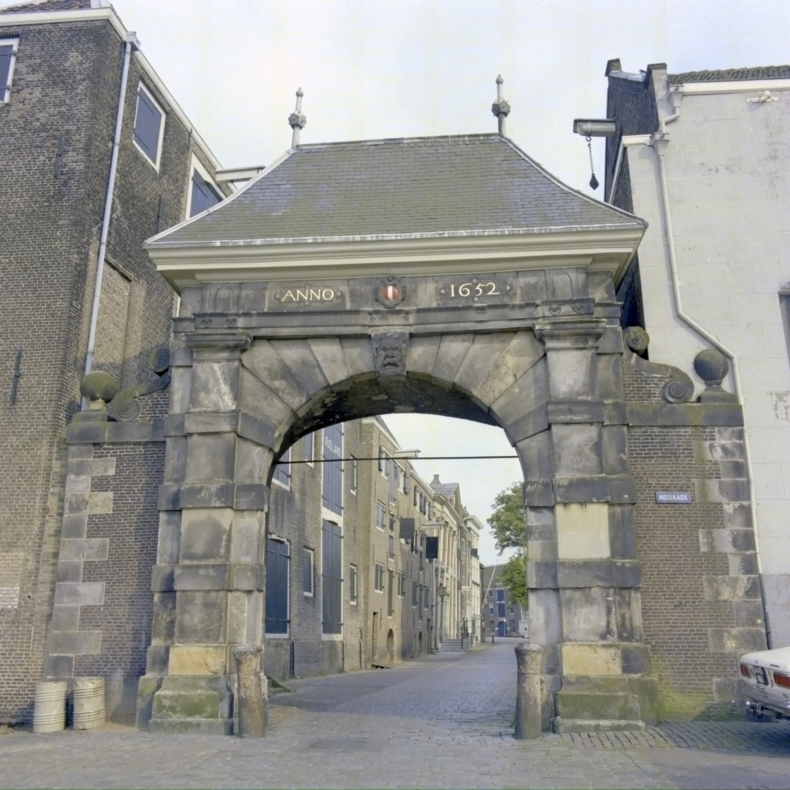 - Catrijnepoort vanaf de Hooikade naar de Korte Engelenburgerkade. Links pakhuis Rusland.