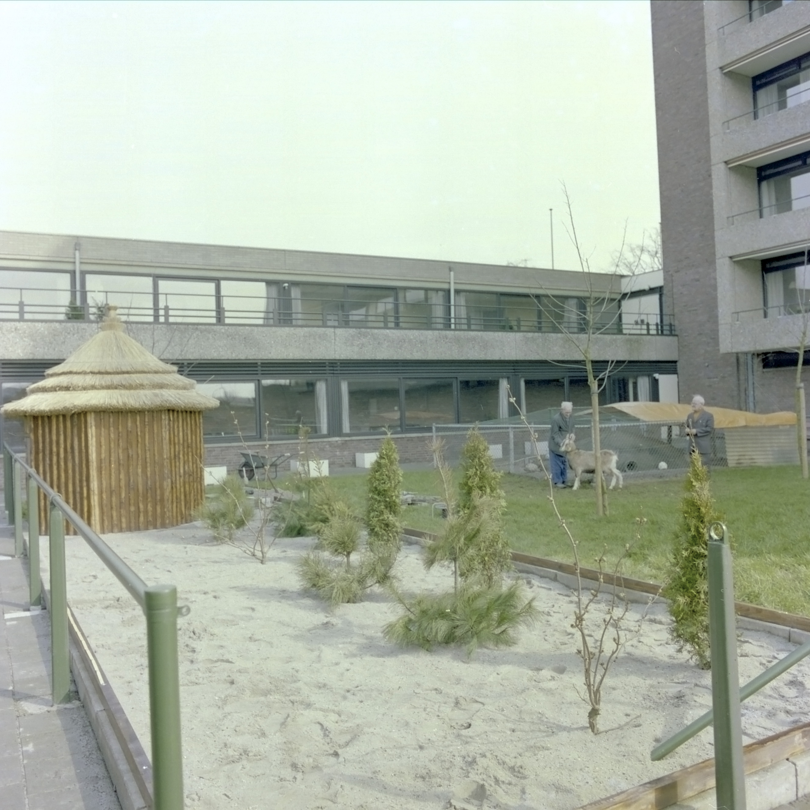 - Binnentuin van bejaardentehuis Avondzon aan de Talmaweg.