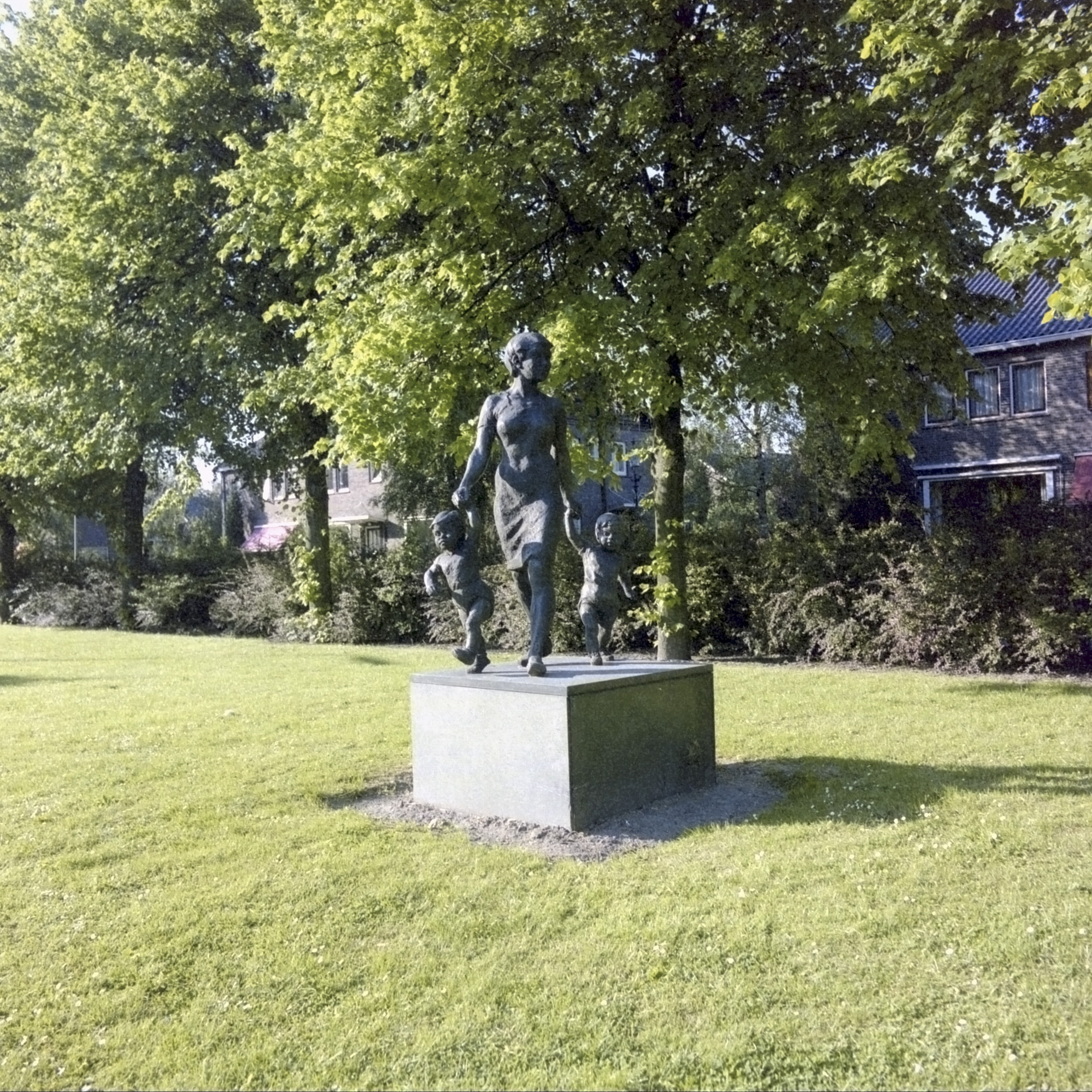Beeld "Moeder met tweeling" van Marcus Ravenswaaij in de Graaf Willemlaan te …