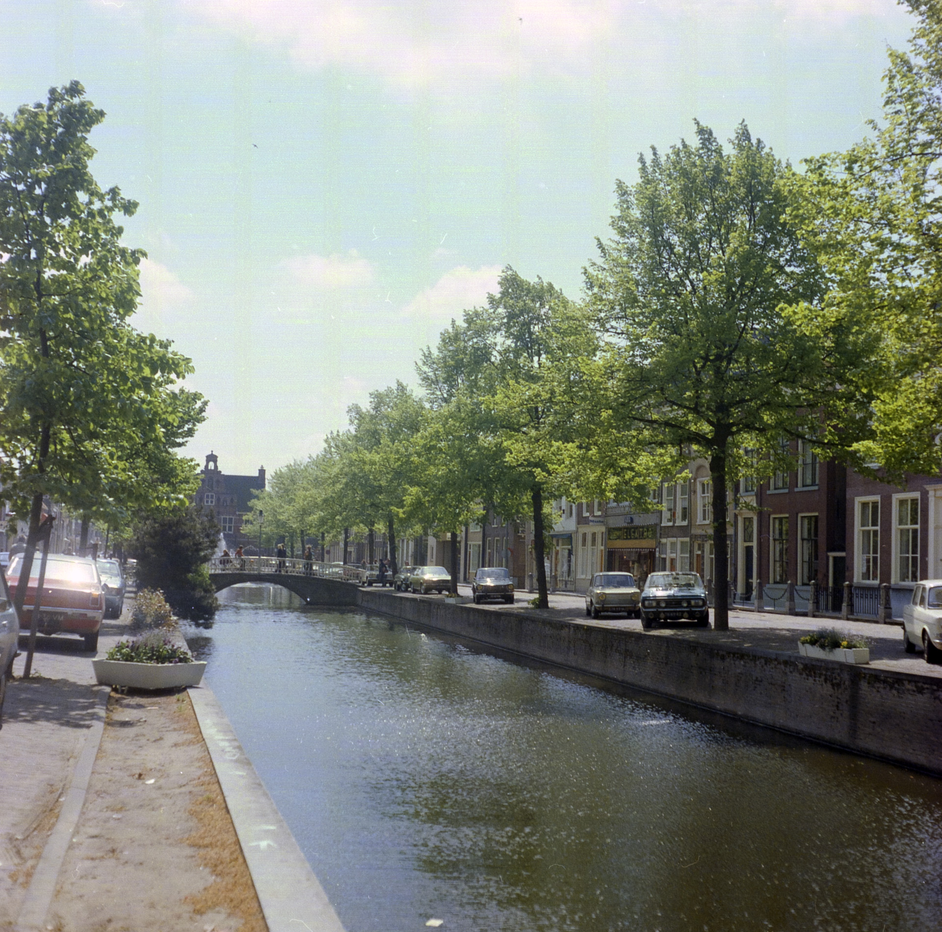 Oost-Voorstraat en West-Voorstraat (rechts) in de richting van het raadhuis in …