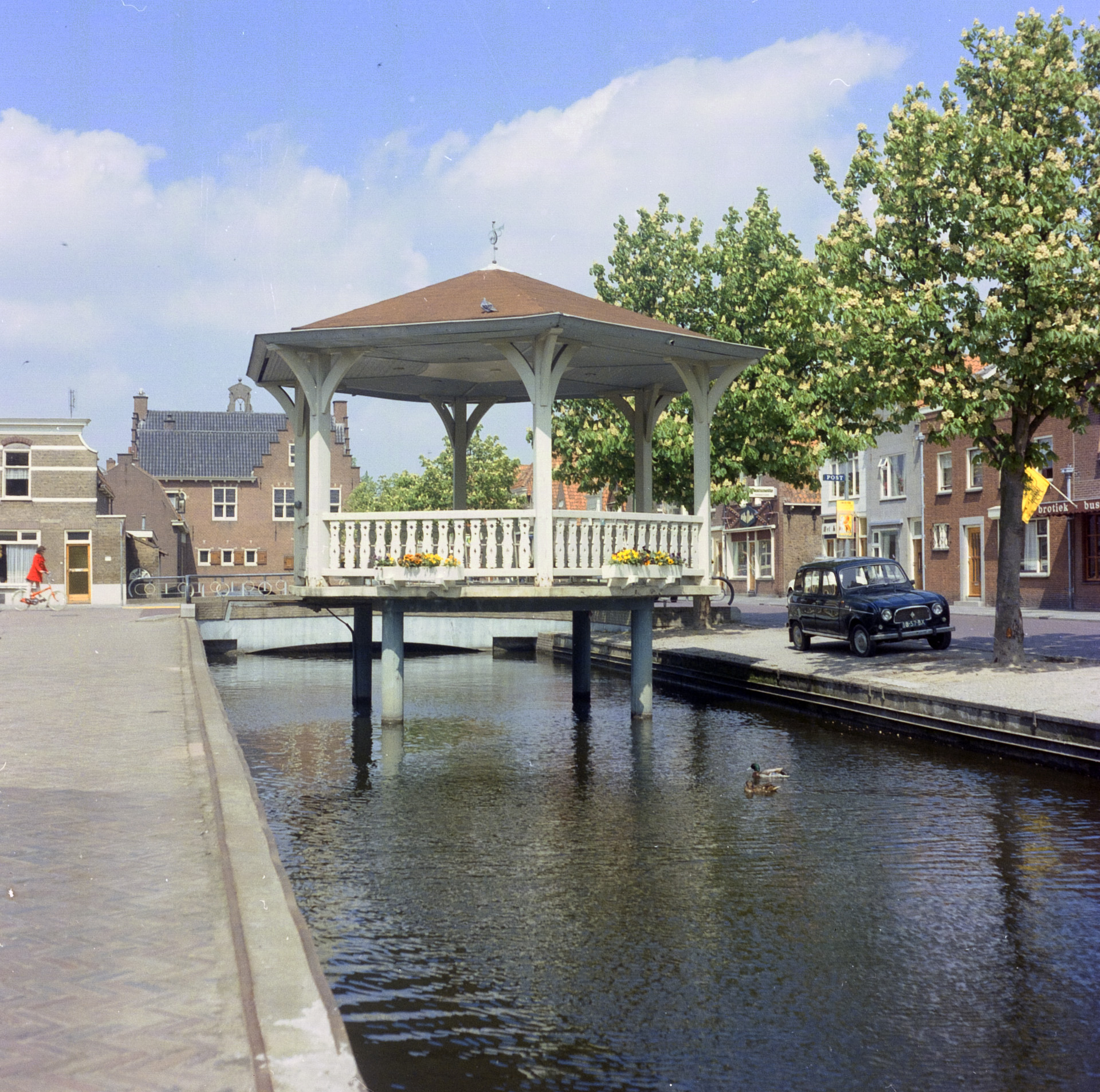- Water tussen de Vlietkade (links) en de Oost-Voorstraat in Oud-Beijerland, gezien in noordelijke richting naar de achterkant van het raadhuis.