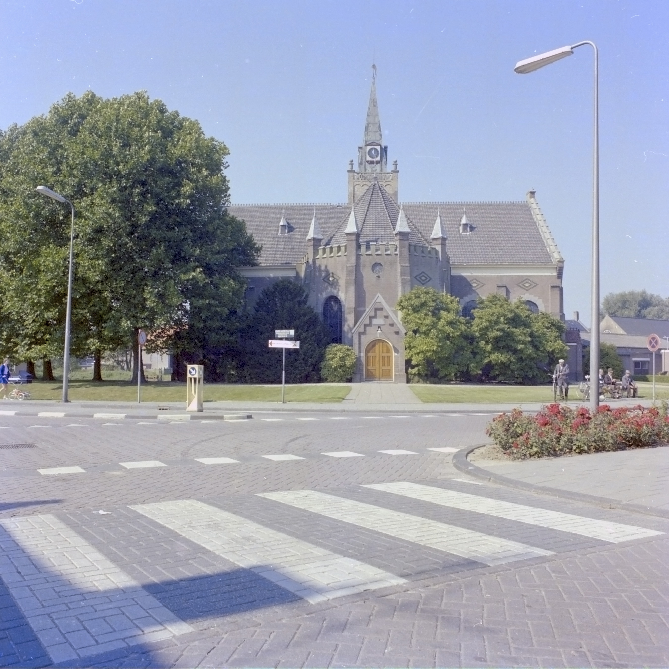 Nederlands Hervormde Kerk aan de Smidsweg, gezien vanaf de Zuid Voorstraat in 's-Gravendeel.