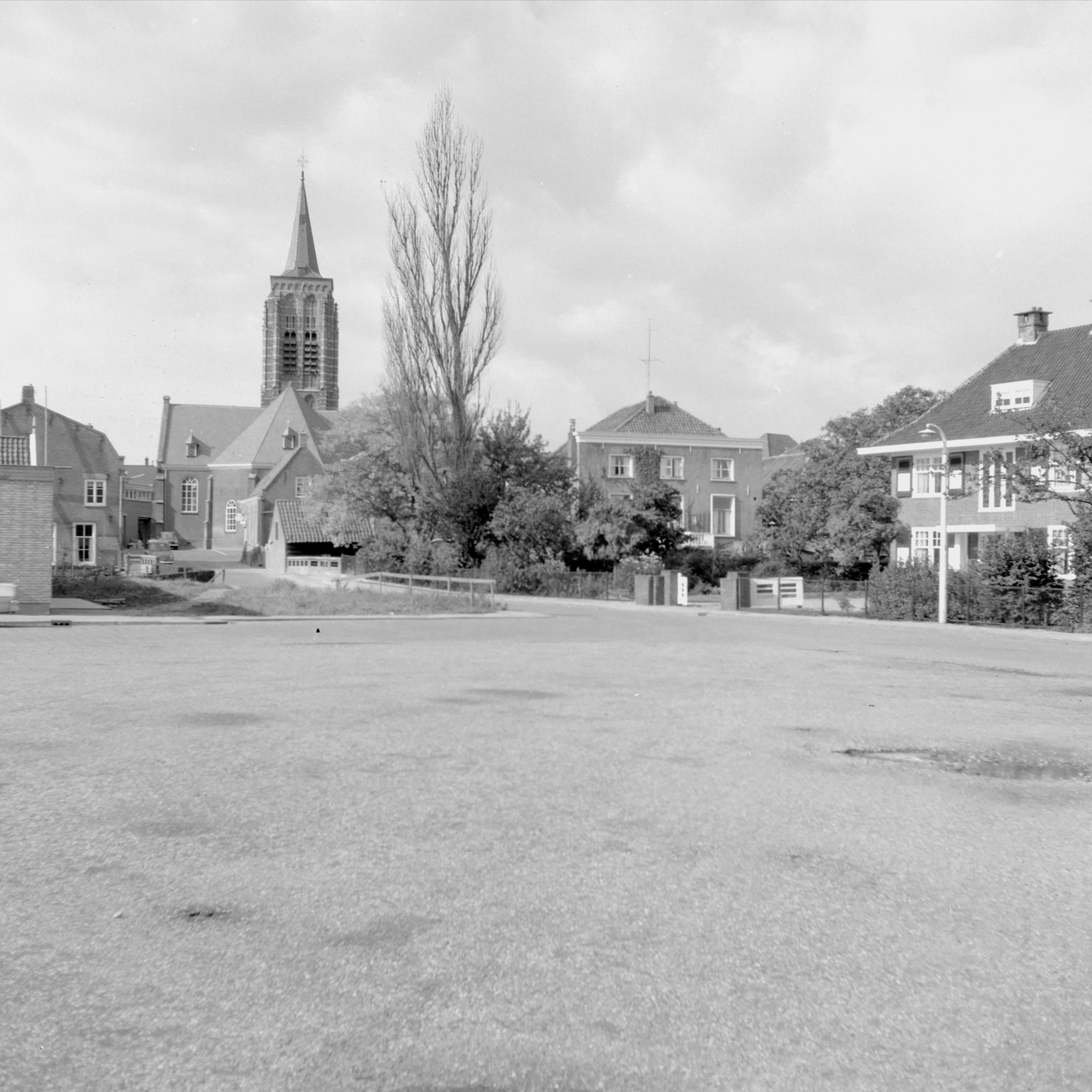 - De Hervormde Kerk in Groot-Ammers vanaf de Wilhelminastraat gezien.