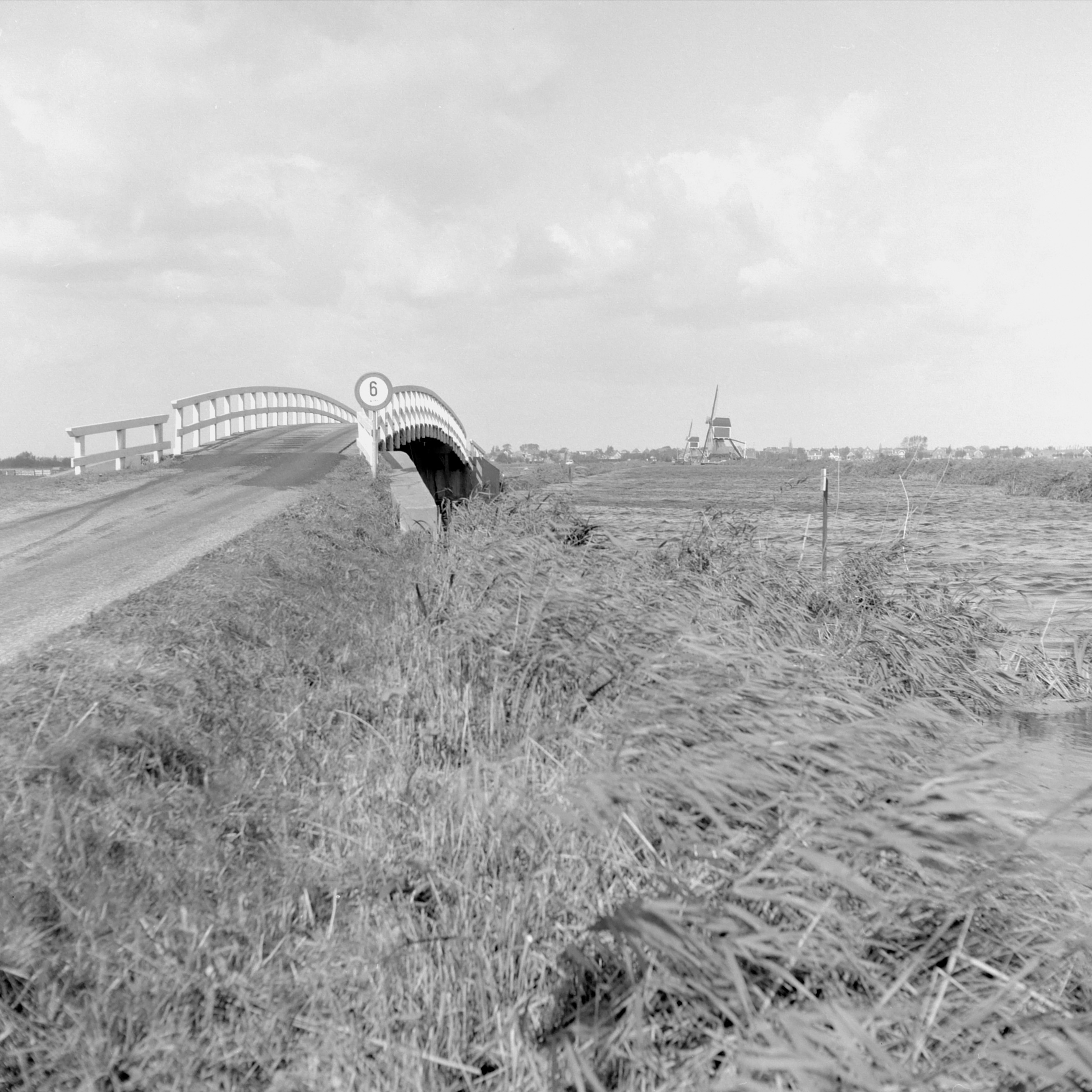 - Brug in de Ammerse Kade over de Groote of Achterwaterschap in Brandwijk. Vooraan staat de Graaflandse Molen, daarachter de Gelkenesmolen.