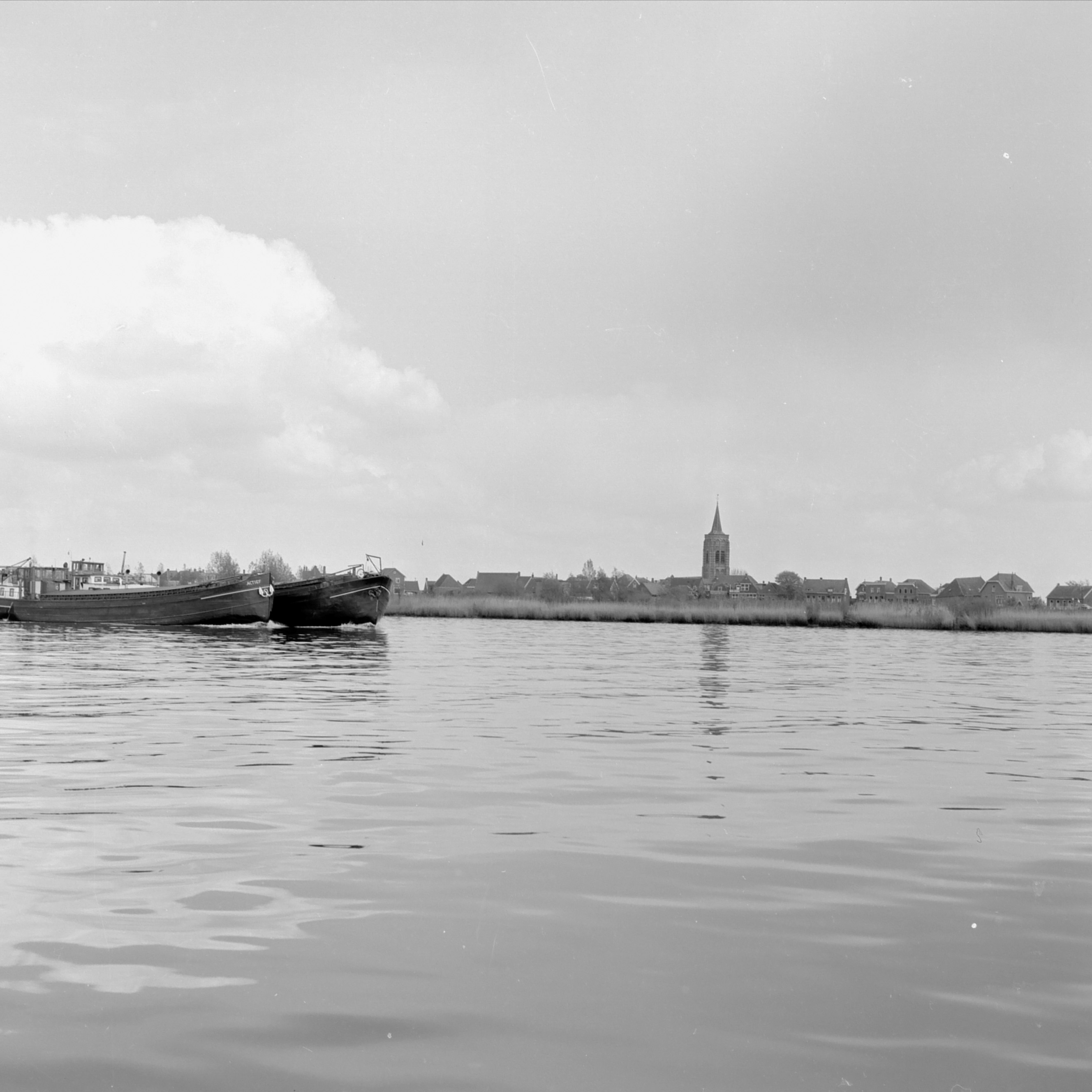 - Zicht over de Lek op de Hervormde Kerk in Groot-Ammers vanaf de Lekdijk in Ammerstol.