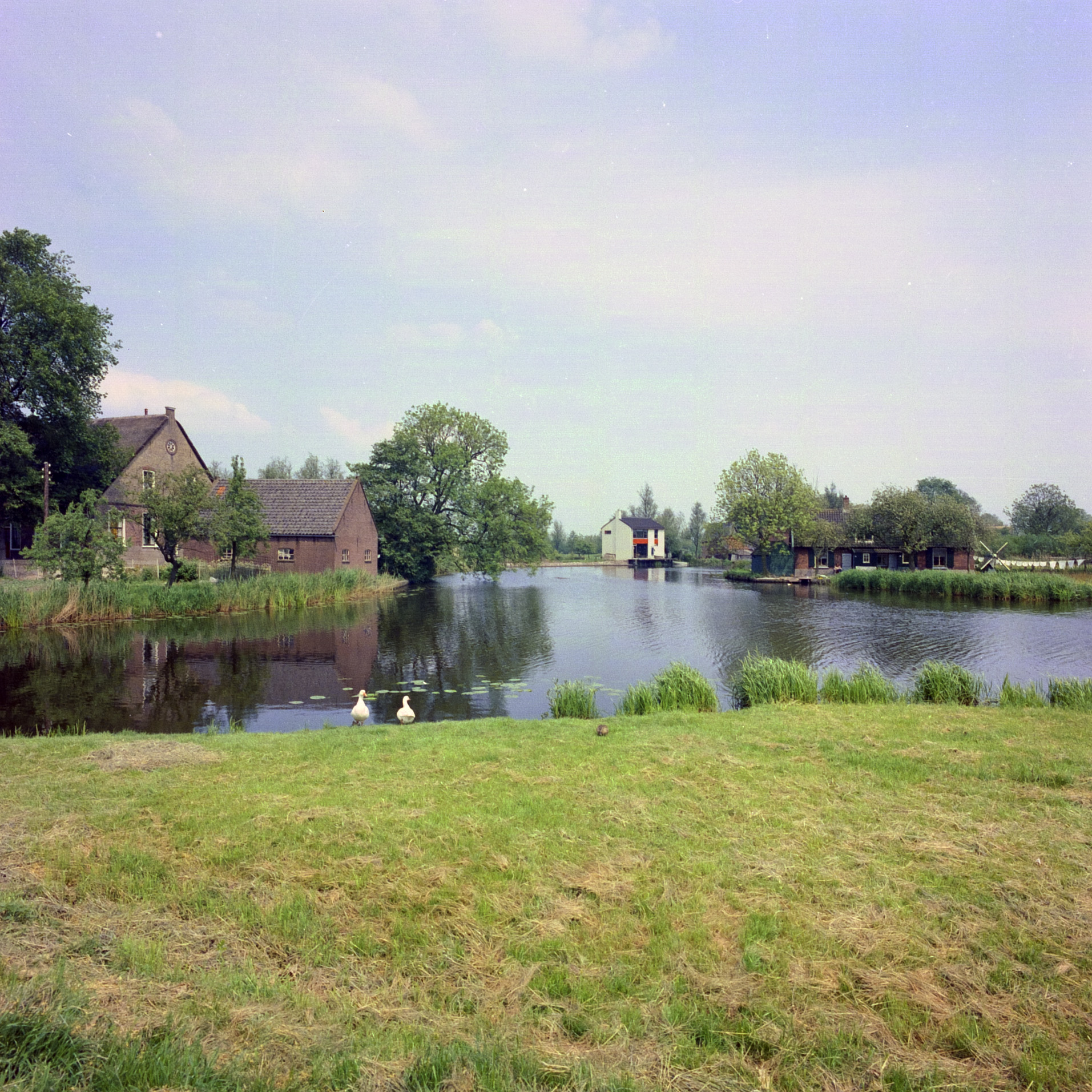 - Links boerderij 't Hoog aan de Slingelandseweg in Giessenburg, gezien vanaf de brug over Smoutjesvliet.