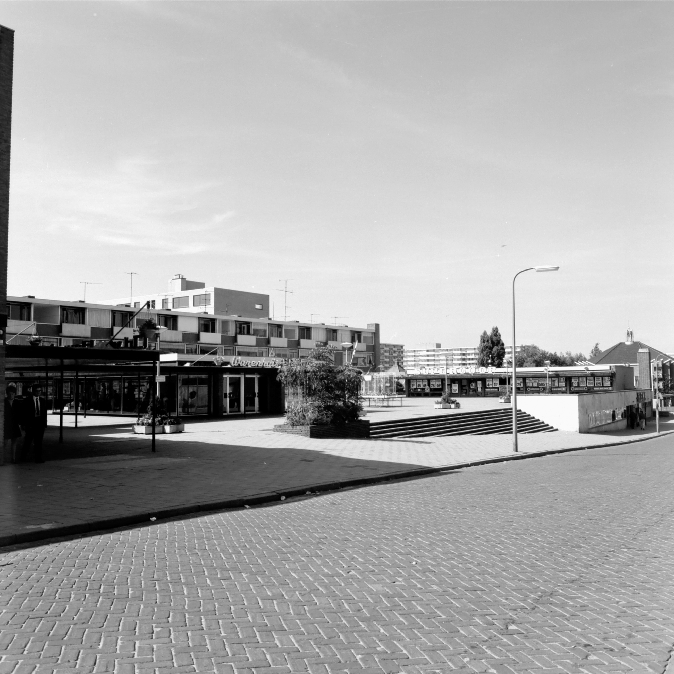 Winkelcentrum De Meent vanaf de Brederodelaan in Papendrecht. Rechts op de achtergrond …