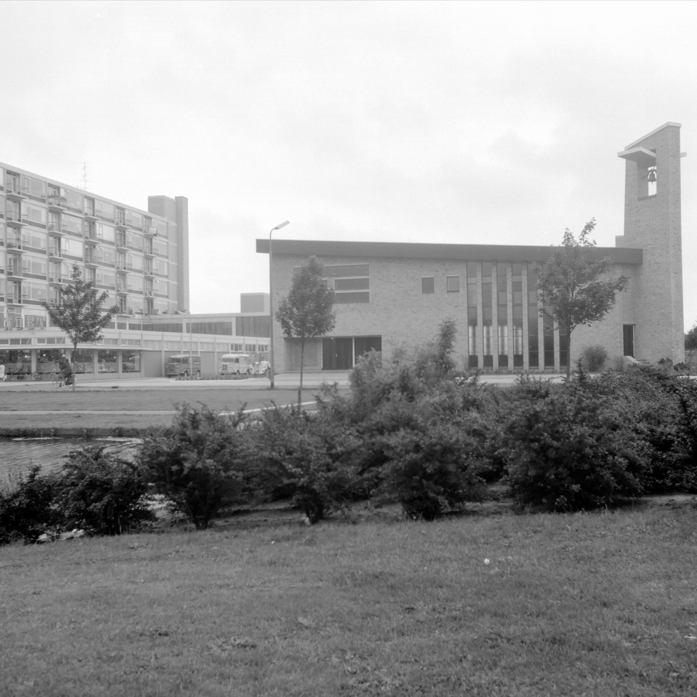 - Gereformeerde Eben Haëzerkerk aan de Burgemeester Jansenlaan in Zwijndrecht. Het flatgebouw staat in de Hoveniersstraat.