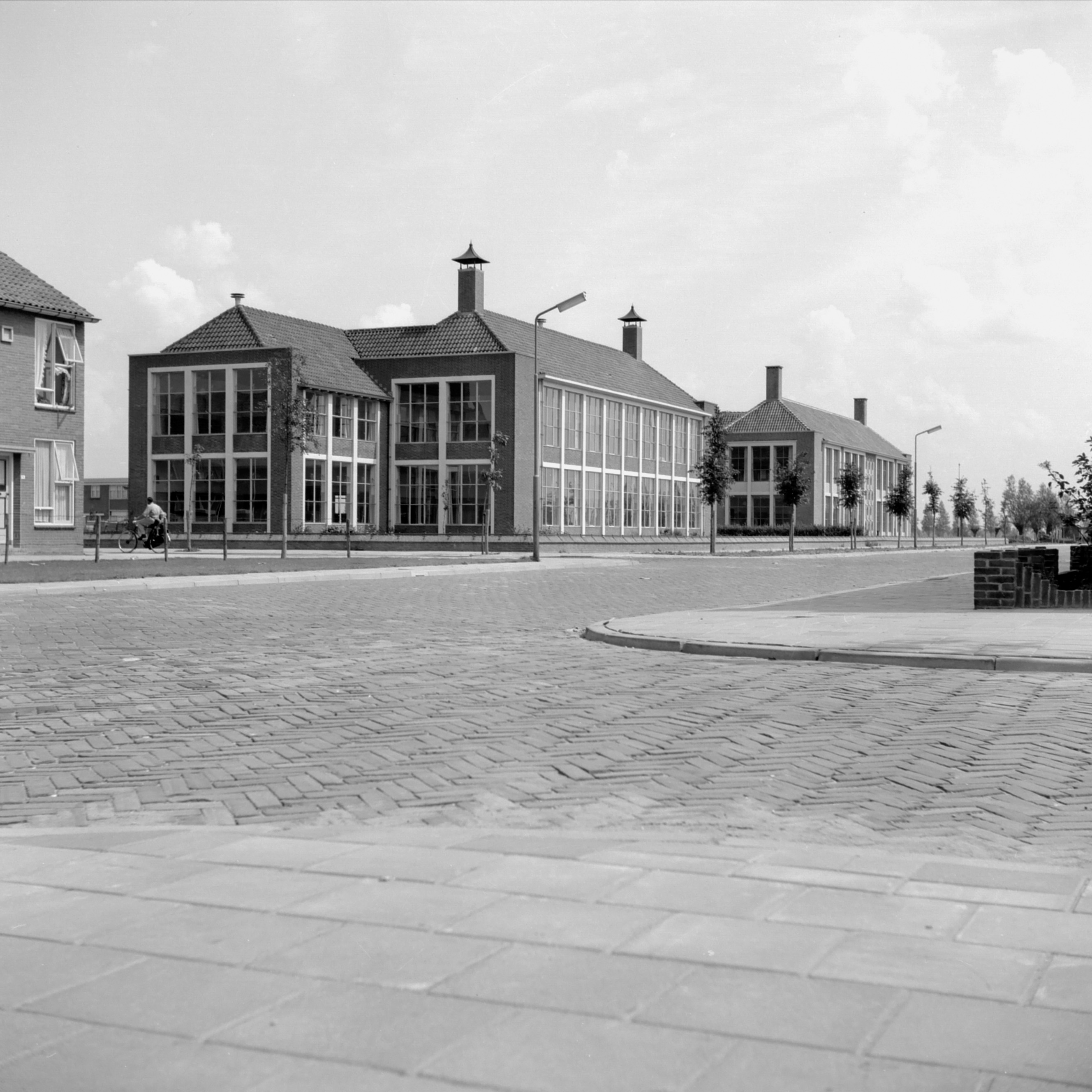 - Vooraan school 4, later de Jan Ligthartschool, daarachter de Prinses Ireneschool aan de Thorbeckelaan in Sliedrecht.