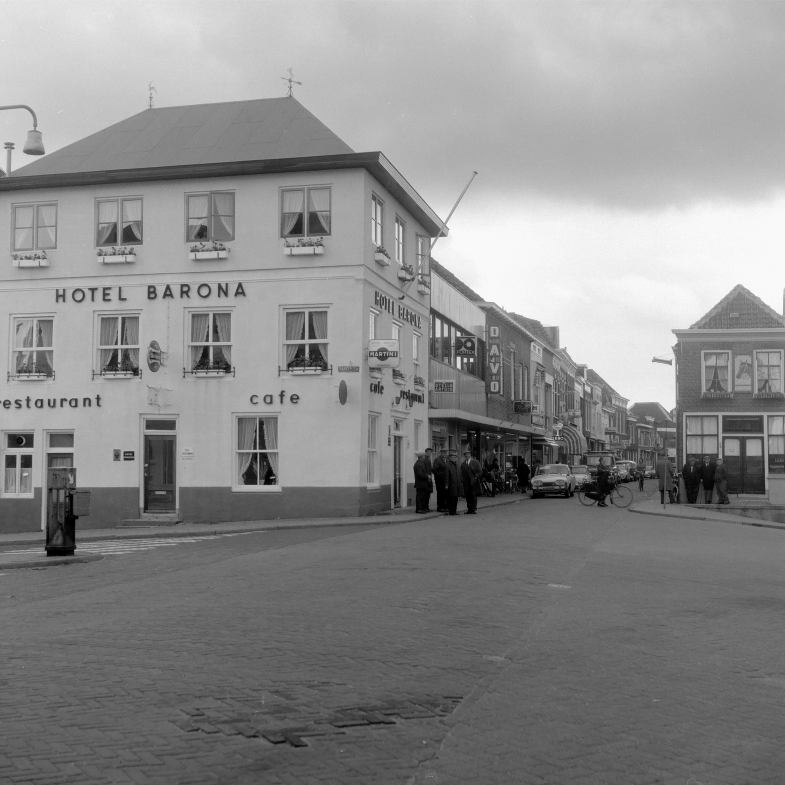 Hotel-café-restaurant Barona op het Marktplein, hoek Ooststraat in Oud-Beijerland.