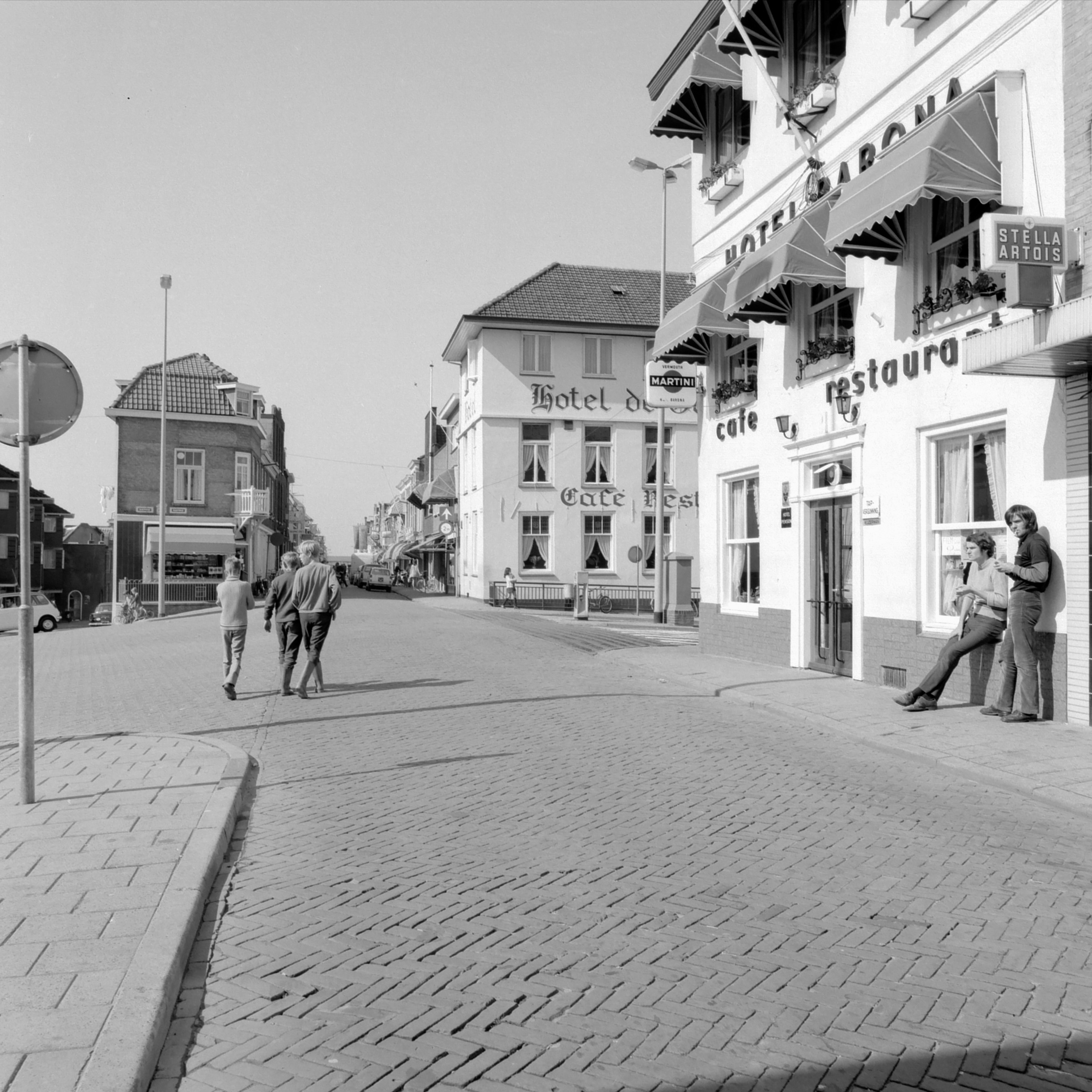 - De hotels Barona en De Oude Hoorn aan het Marktplein in Oud-Beijerland, geien vanaf de Oostdijk.