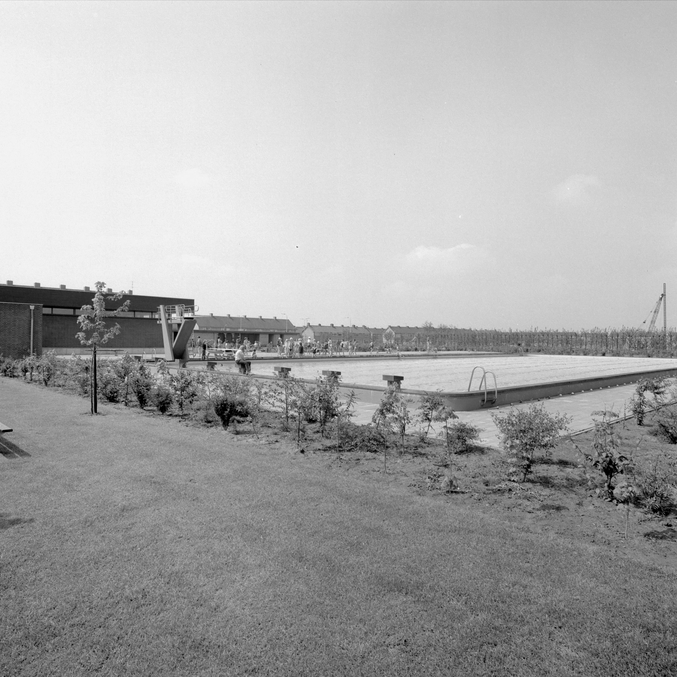- Zwembad in Oud-Beijerland en huizen aan de Hortensiastraat.