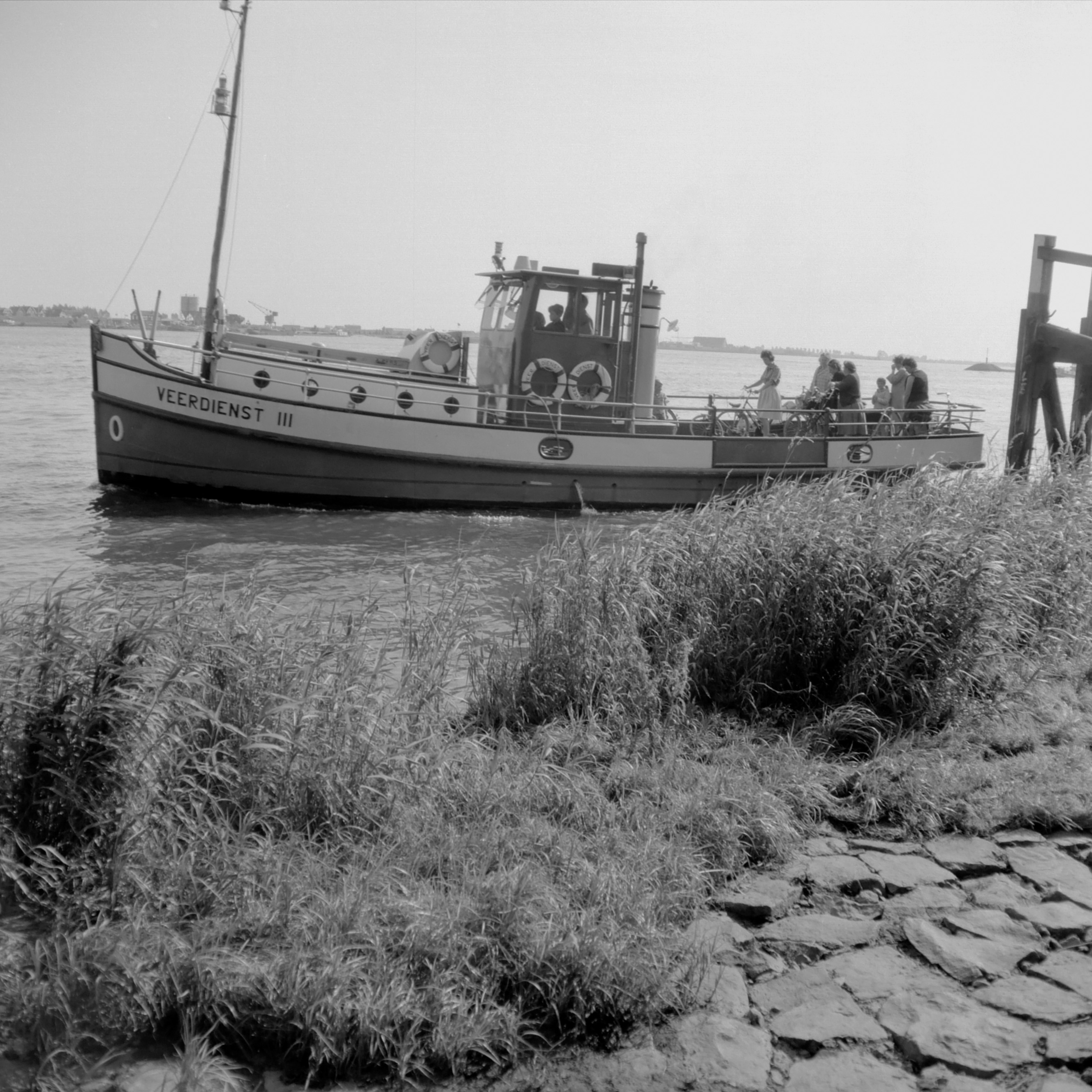 Veerdienst III bij de aanlegplaats aan de Rivierdijk in Hardinxveld-Giessendam. De pont …