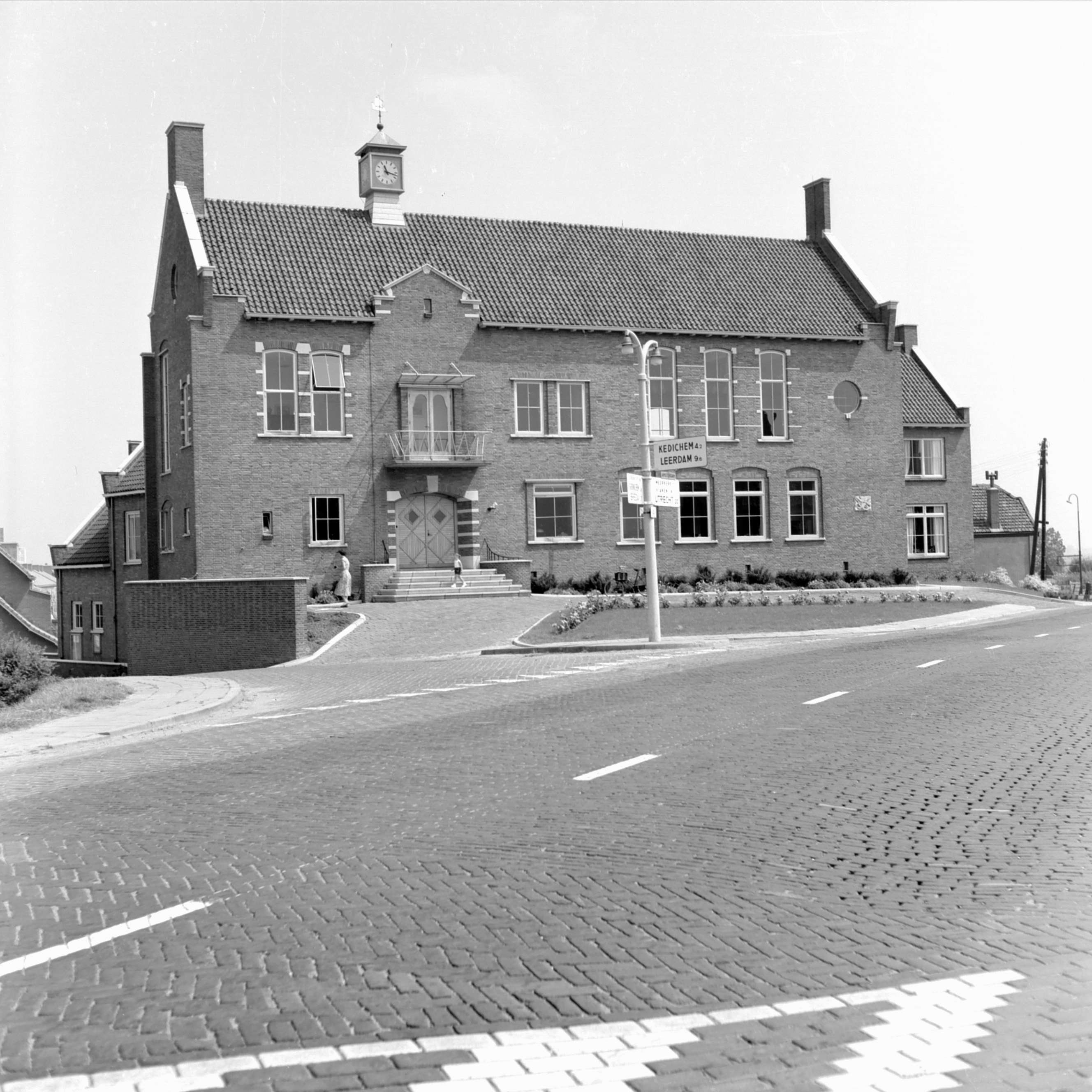 - Raadhuis van Arkel op de hoek van de Raadhuisstoep (links) en de Dam.