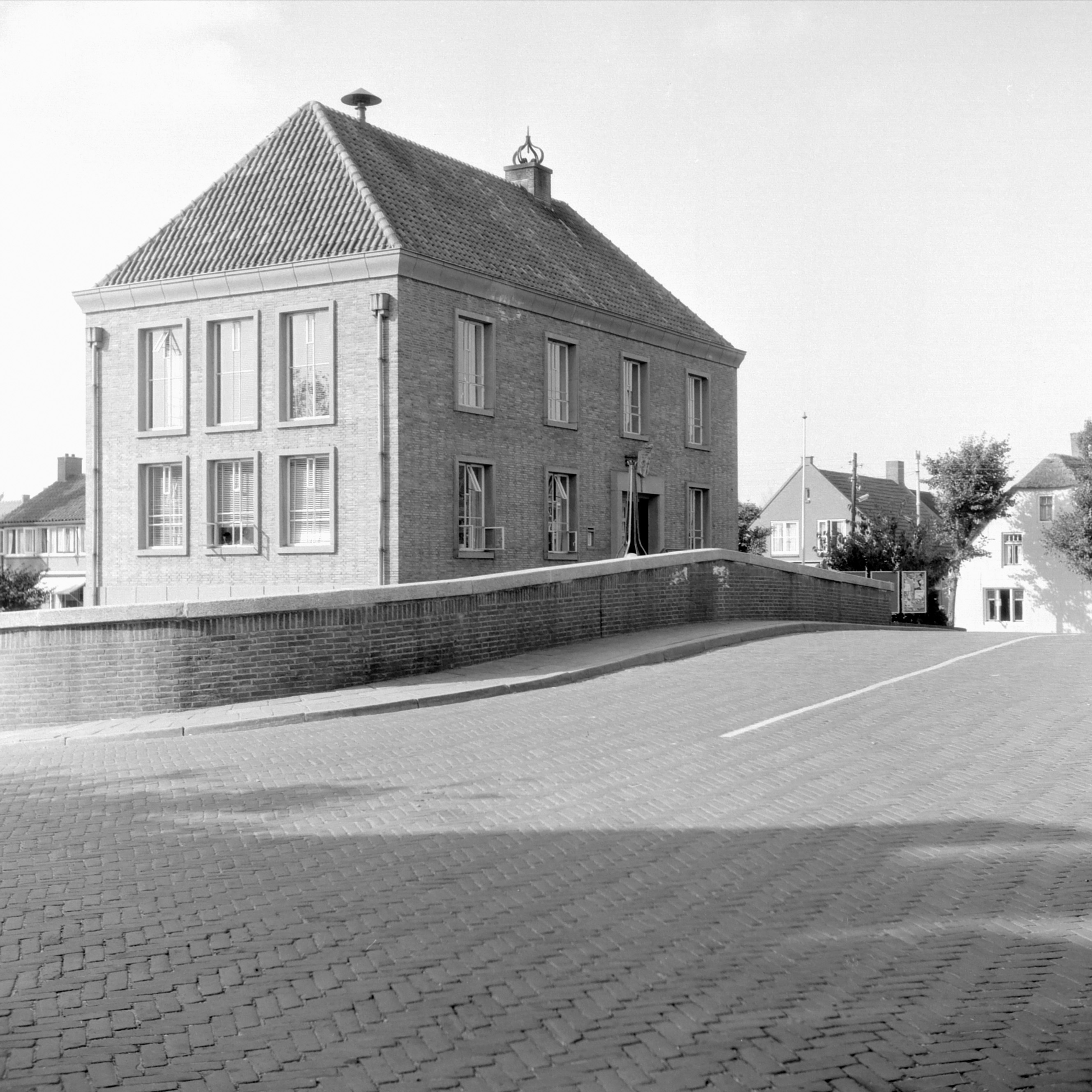 - Gemeentehuis van Bleskensgraaf aan de Kerkstraat bij de brug over de Graafstroom, gezien vanaf de Dorpsstraat.