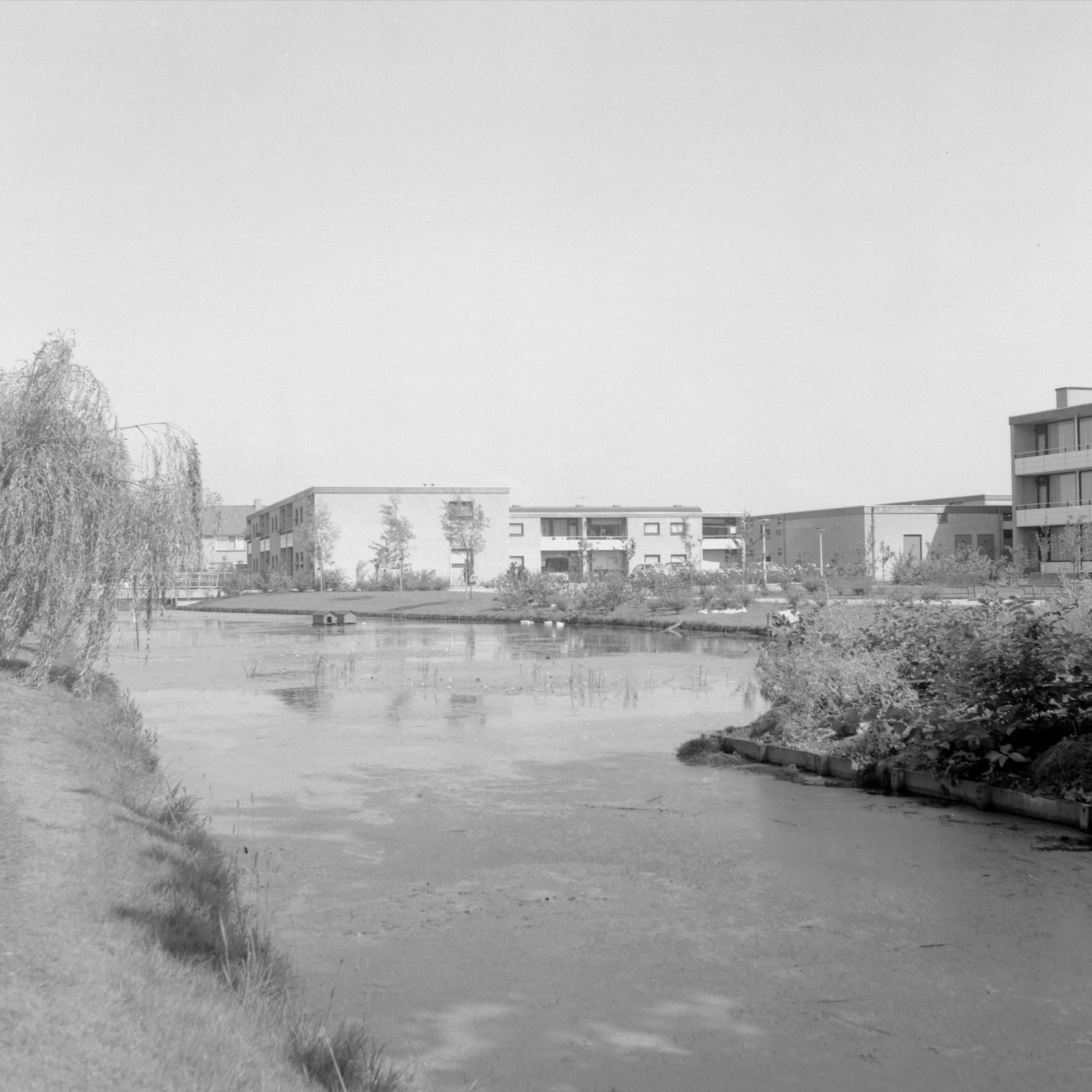 Vanaf de Burg.Dekkingstraat met rechts het bejaarden centrum Graafzicht (bij de brug is nu de Amandelhof in Bleskensgraaf.