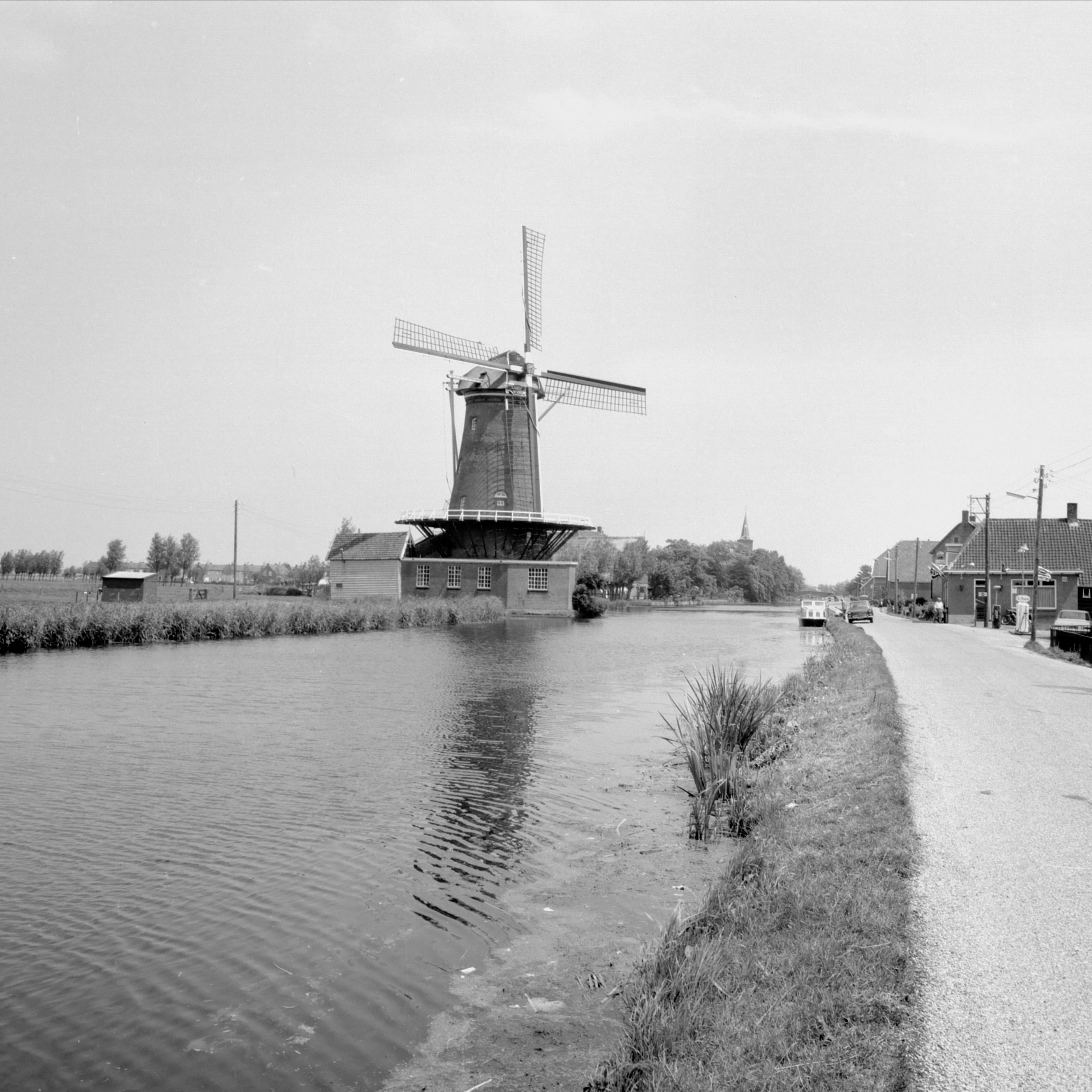 - Molen De Vriendschap aan de Heulenslag, gezien vanaf de Dorpsstraat over de Graafstroom in Bleskensgraaf.