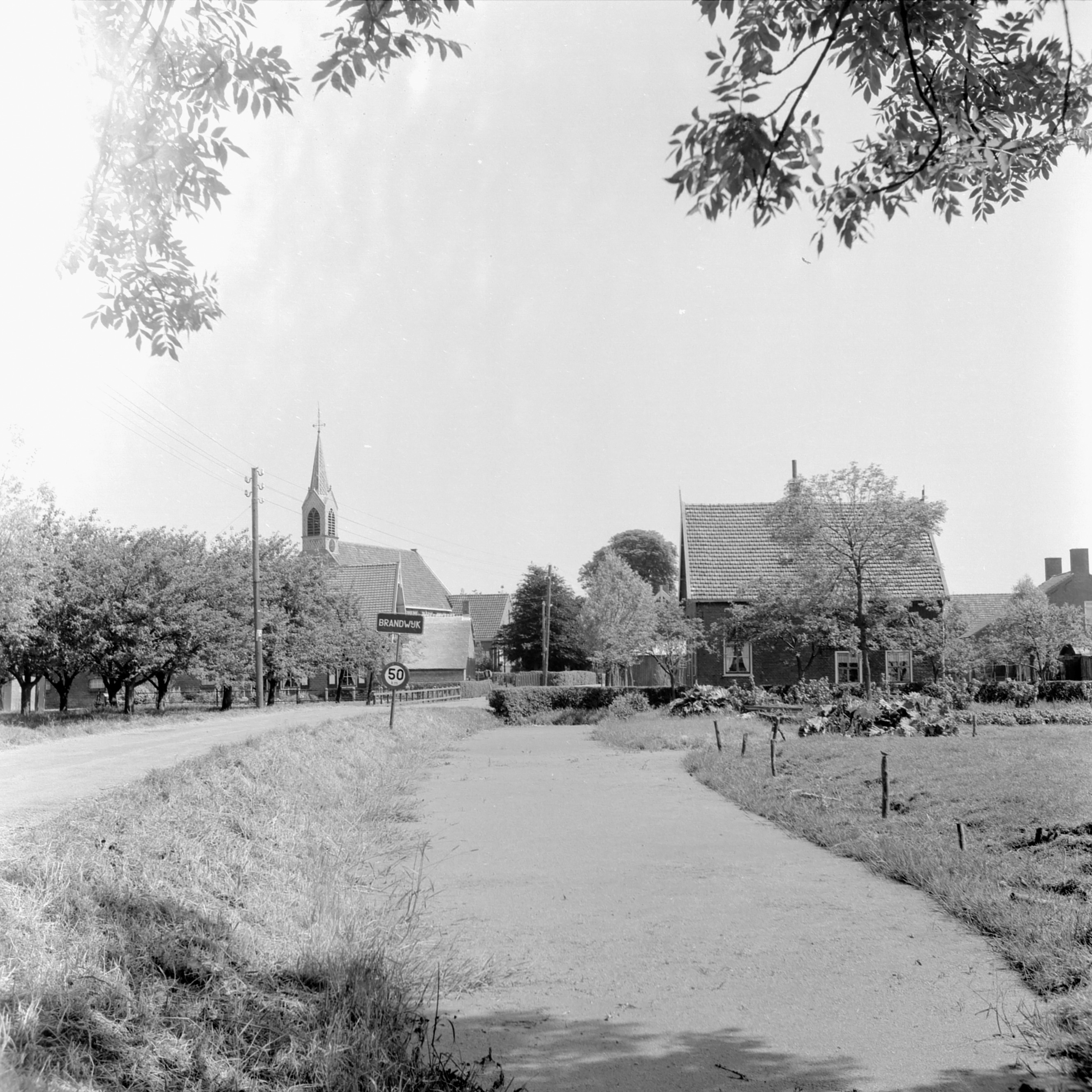 Brandwijksedijk richting de kerk van de hervormde Gemeente in Brandwijk.