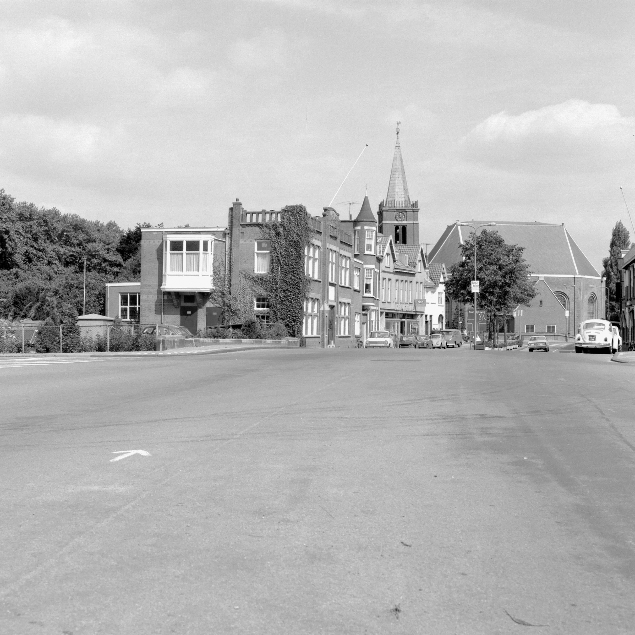 - De Kerkstraat vanaf de Wilhelminastraat richting Grote Kerk en Stationsweg in Sliedrecht.