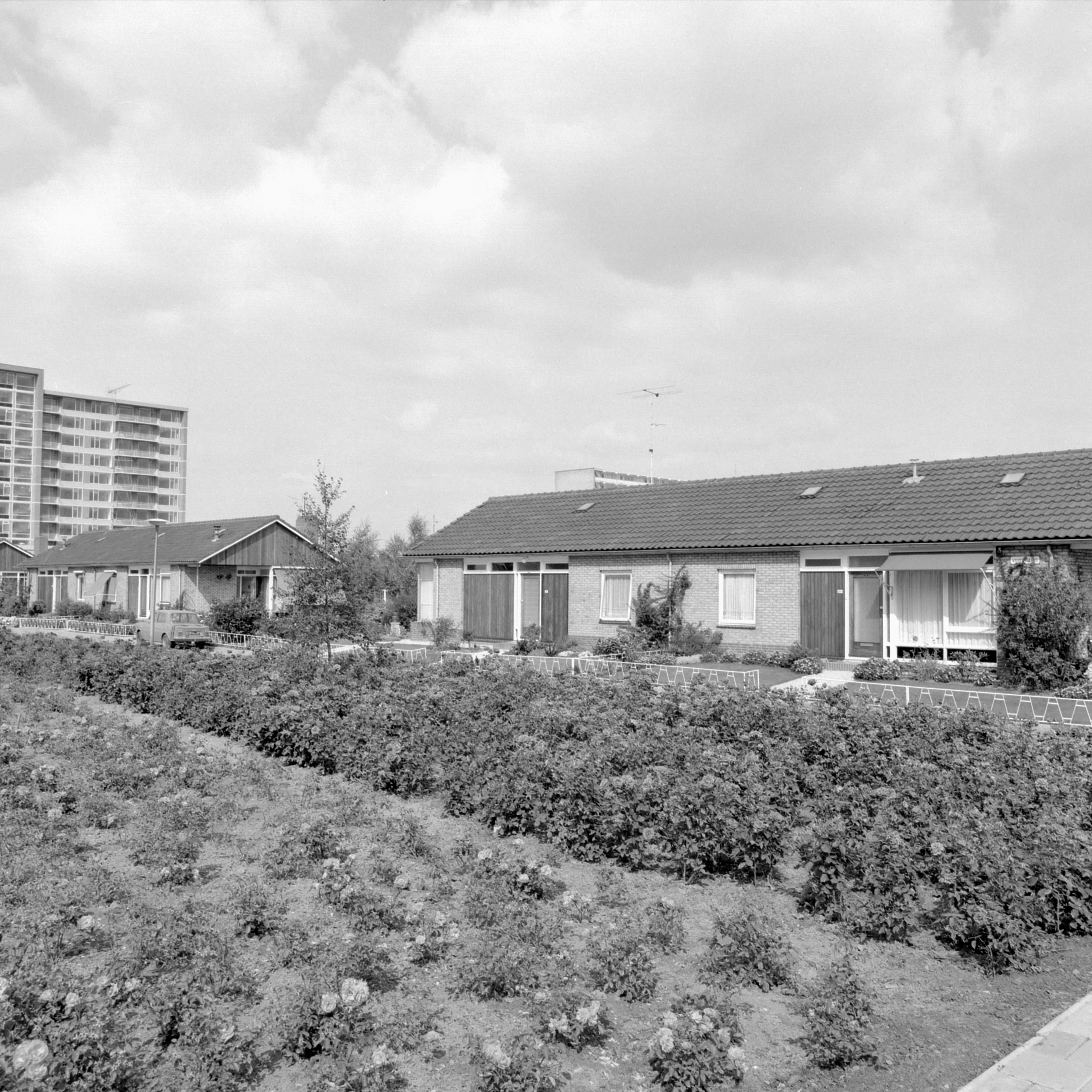 Bungalows aan de Vogelenzang in Sliedrecht. Links op de achtergrond de flat Hof van …