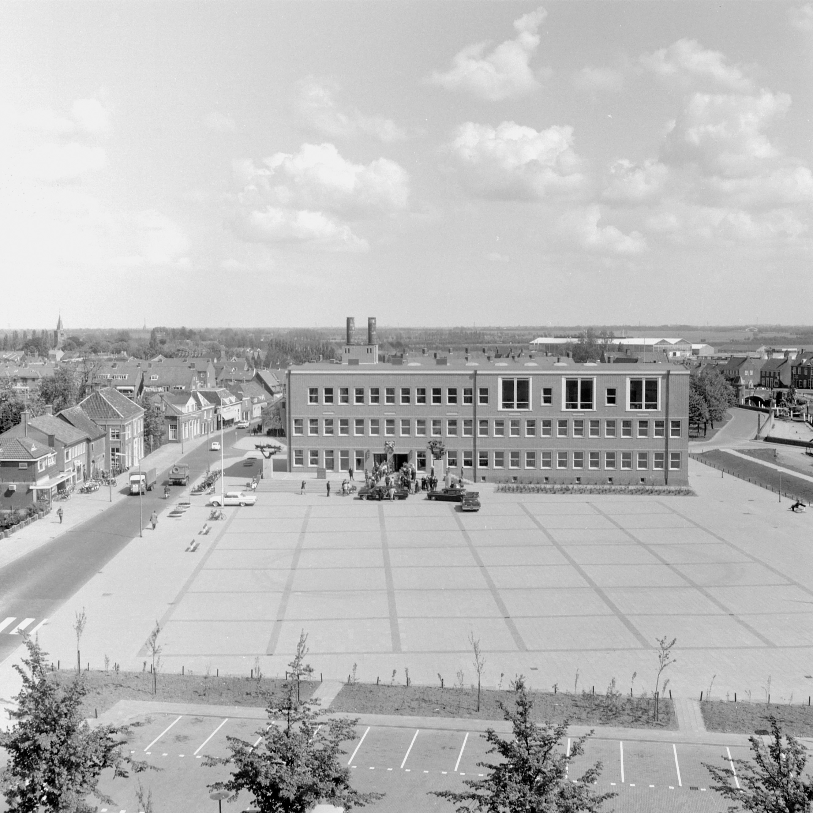 Gemeentehuis van Alblasserdam aan het Cortgene (links) en het Raadhuisplein in …