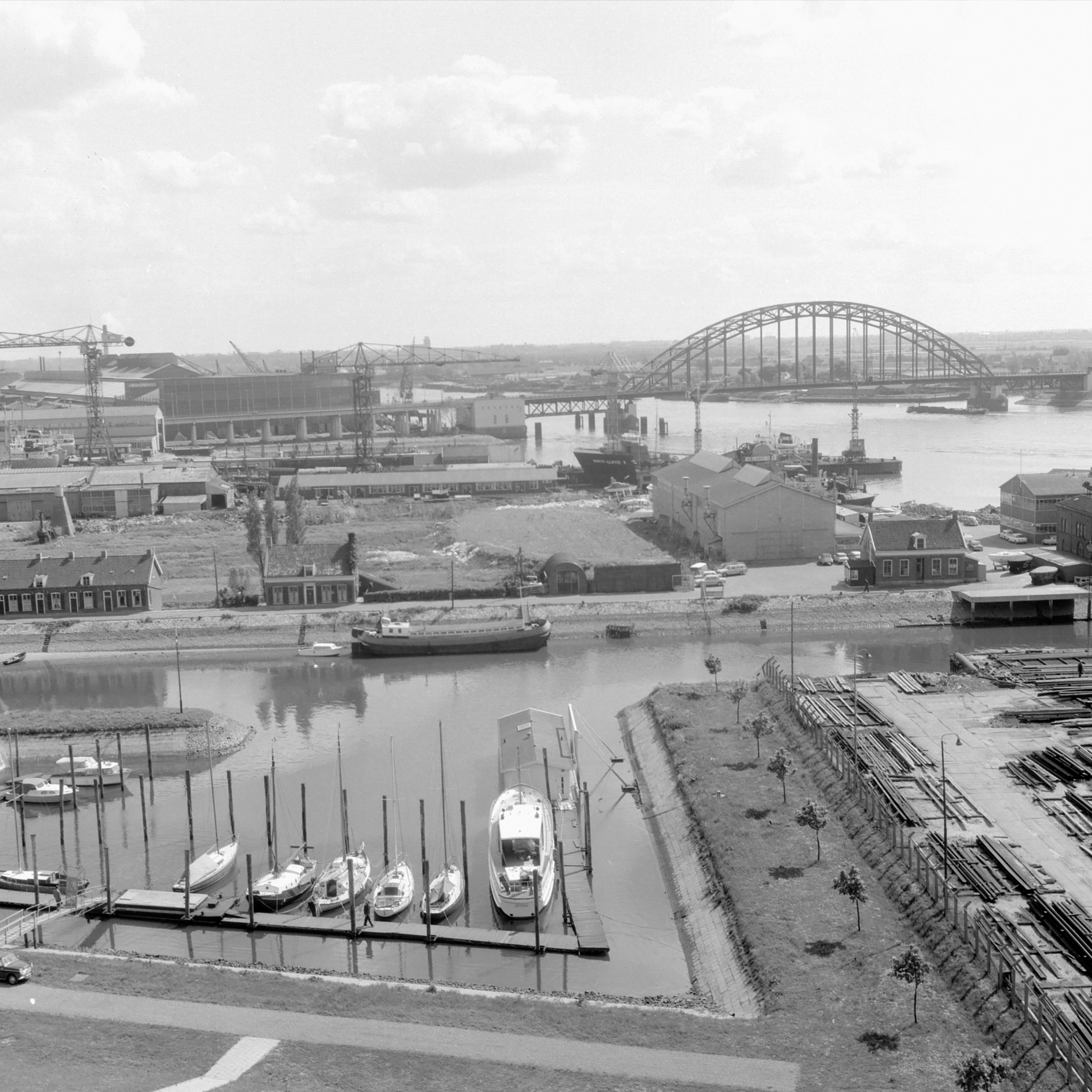 - Panorama vanaf de toren van de Grote Kerk aan het Cortgene over de jachthaven en de Brug over de Noord in Alblasserdam.
