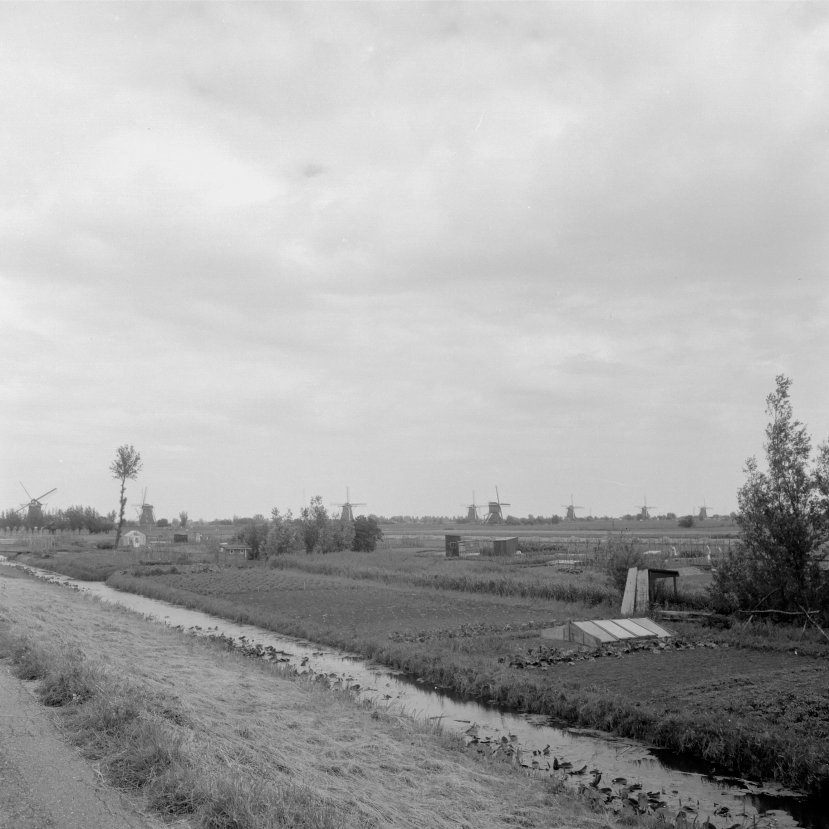 - Molens in Kinderdijk, gezien vanaf de Molenkade in Alblasserdam.