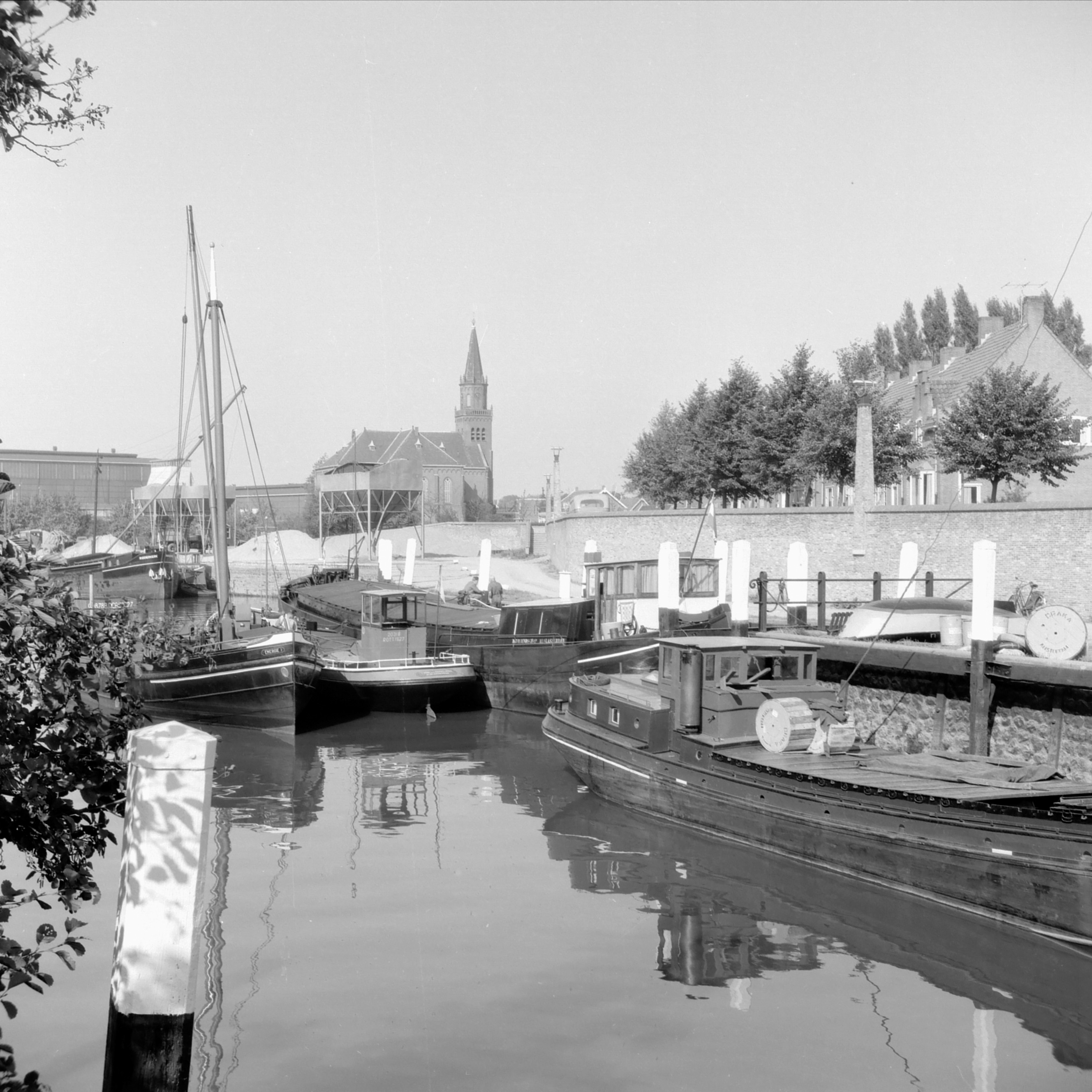 Buitenjachthaven vanaf de Dam richting Grote Kerk in Alblasserdam.