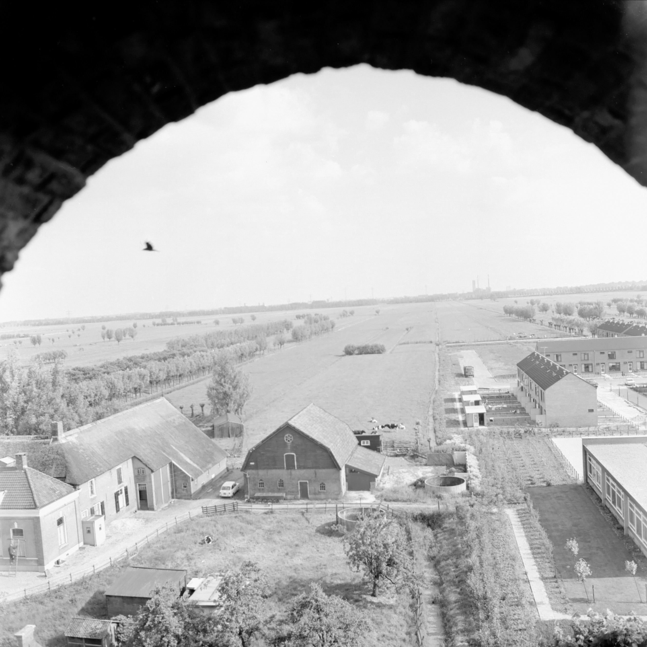 - Panorama vanaf de Hervormde Kerk in Oud-Alblas naar het zuiden. Rechtsonder de Groen van Prinstererschool en het blokje huizen aan de Prins Willem Alexanderstraat.