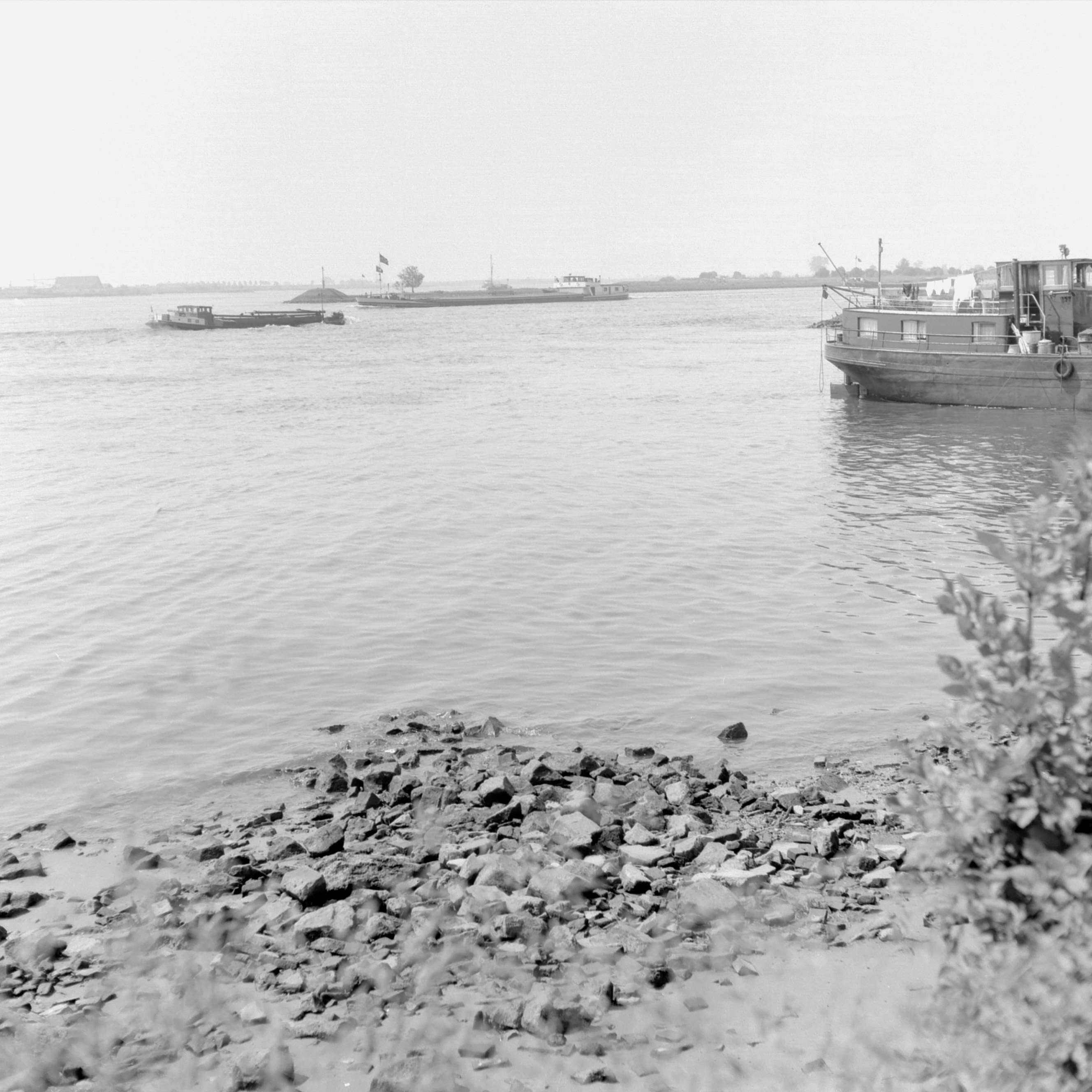 - Knooppunt Beneden Merwede, Nieuwe Merwede en Boven Merwede, gezien naar het zuidwesten vanaf de Rivierdijk t.h.v. De Buurt in Hardinxveld-Giessendam.