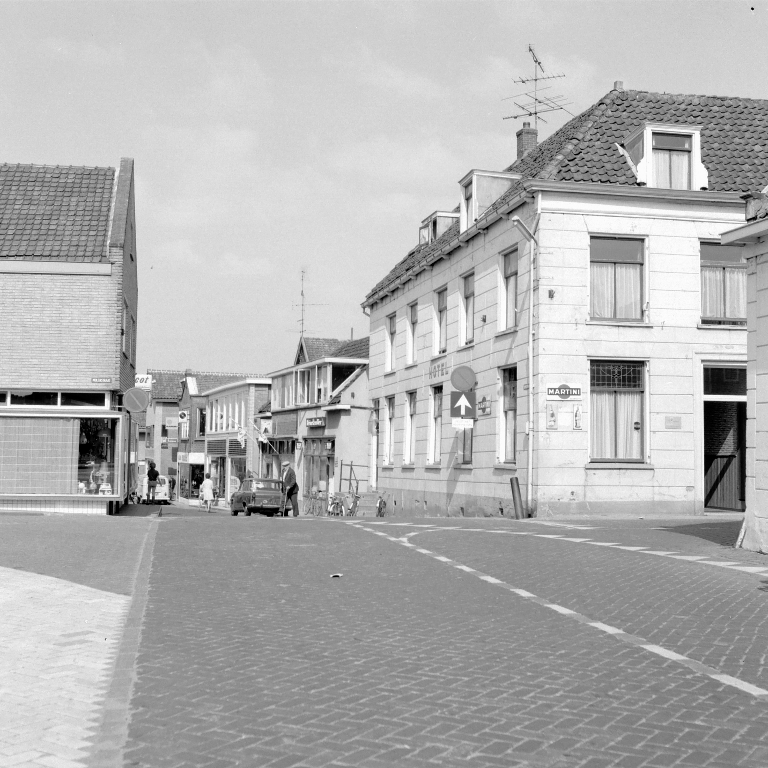 - Damstraat vanaf Buitendams bij de kruising Molenstraat (links) en de Peulenstraat in Hardinxveld-Giessendam. Rechts Hotel de Zwaan.