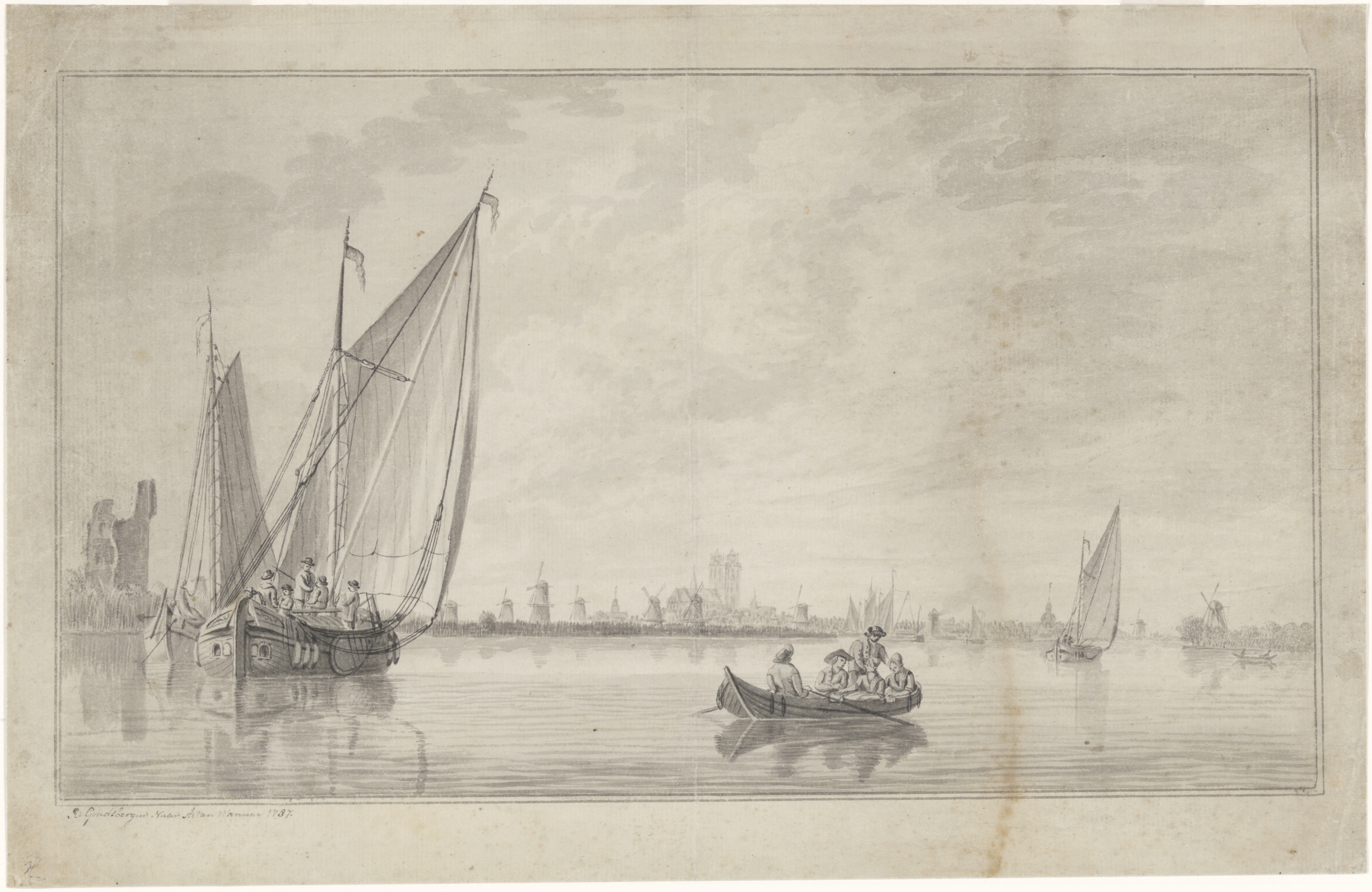 Gezicht op de Merwede ter hoogte van de ruïne van het Huis te Merwede.