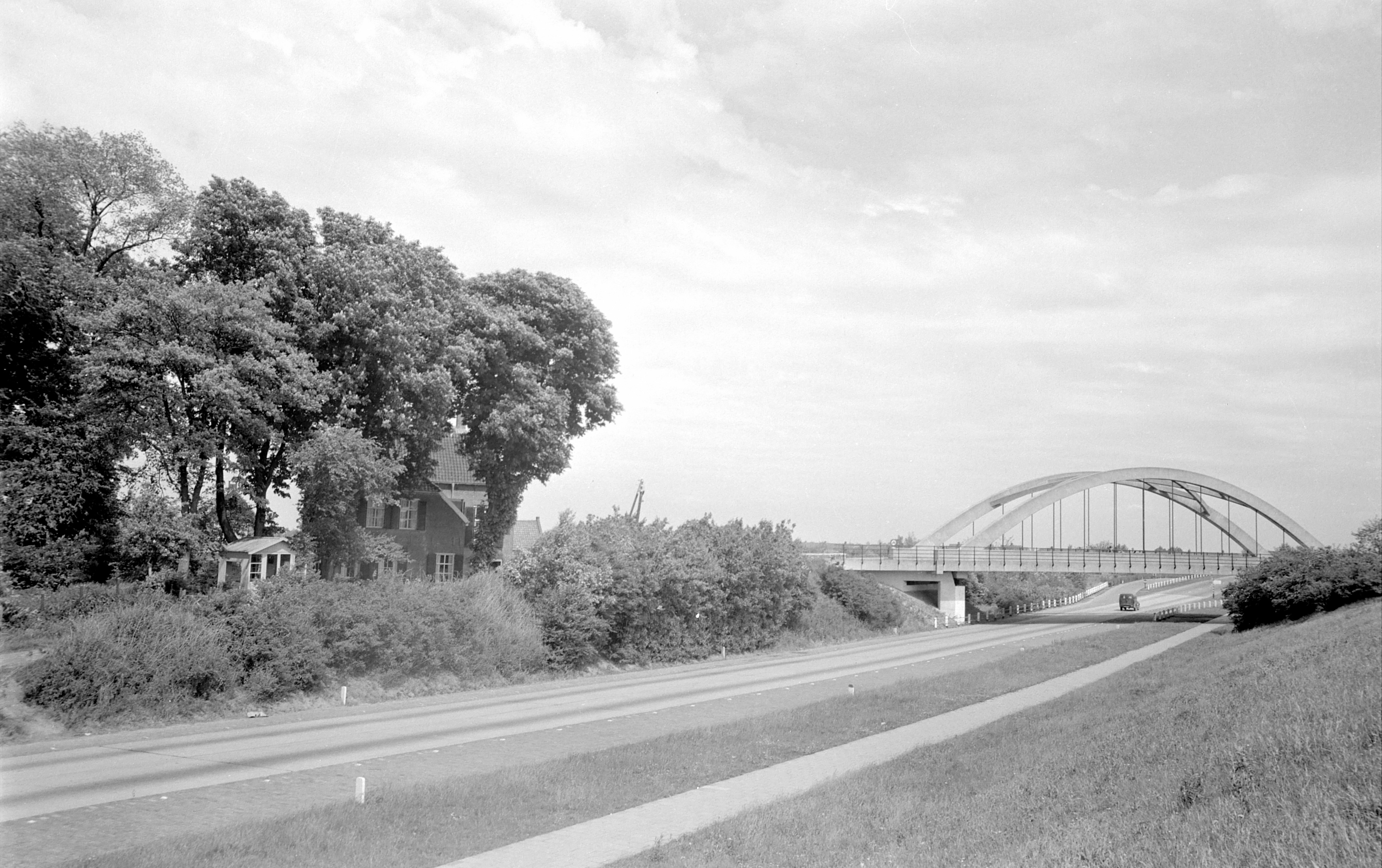 Brug over de A15 tussen links de Peulenstraat Zuid en de Rivierdijk (rechts) in …