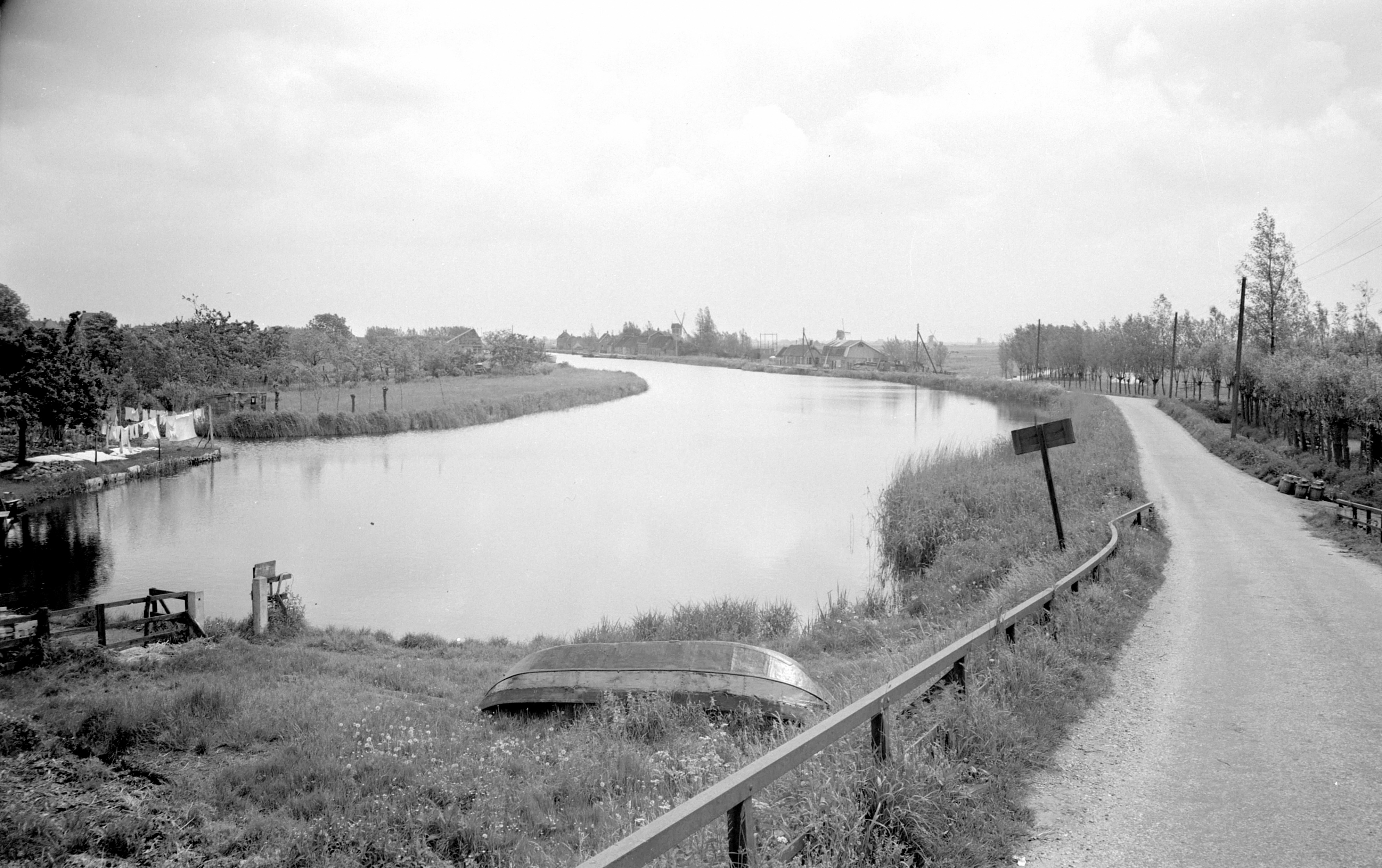 Vanaf Sluis met rechts de Ammerse Kade ,links met schuin dak is de vereniging IJsclub de Telegraaf Groot Ammers.