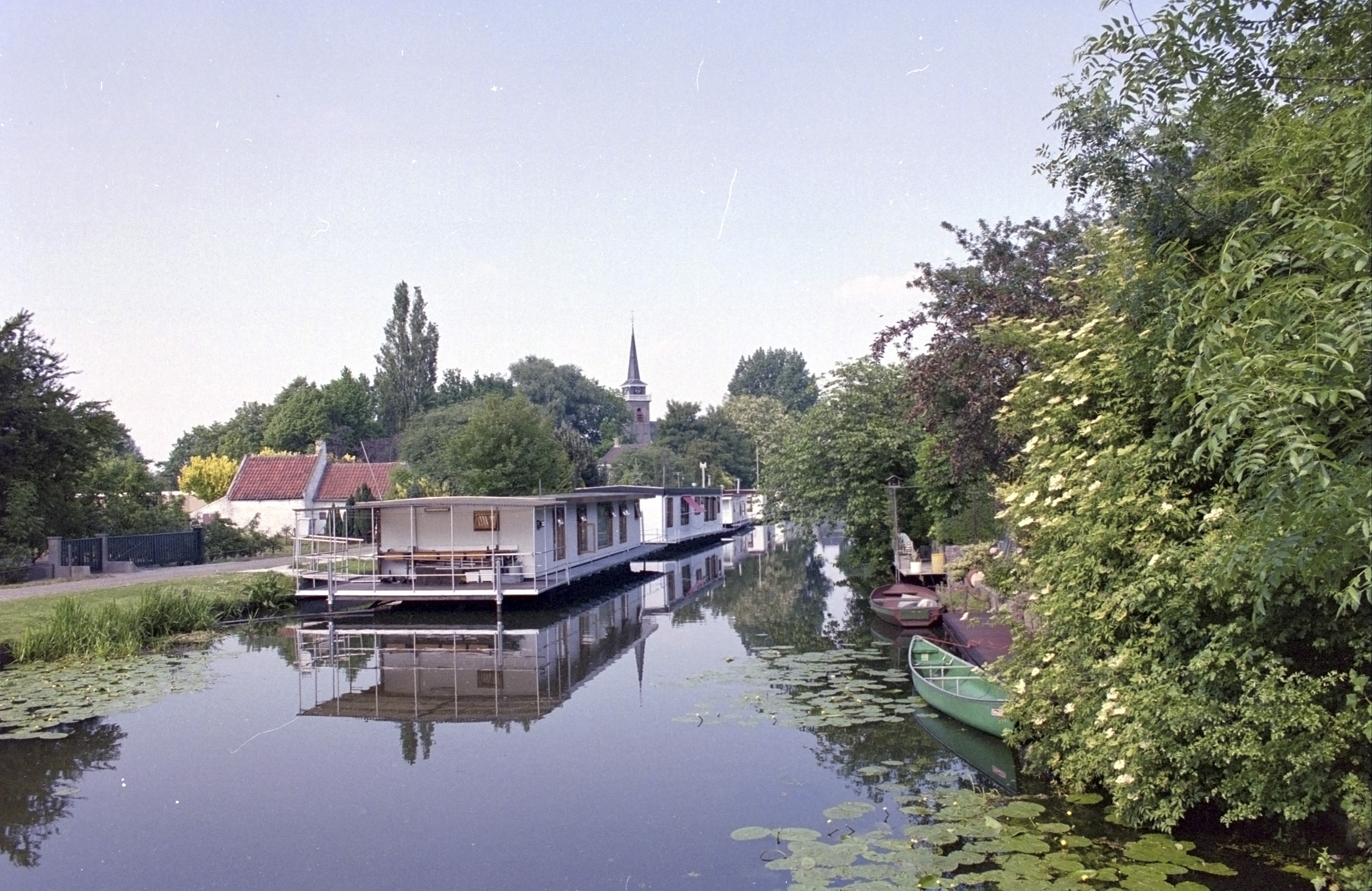 Boezemvliet thv Boezemkade nr.9 met de Dorpskerk op de achtergrond in Puttershoek.